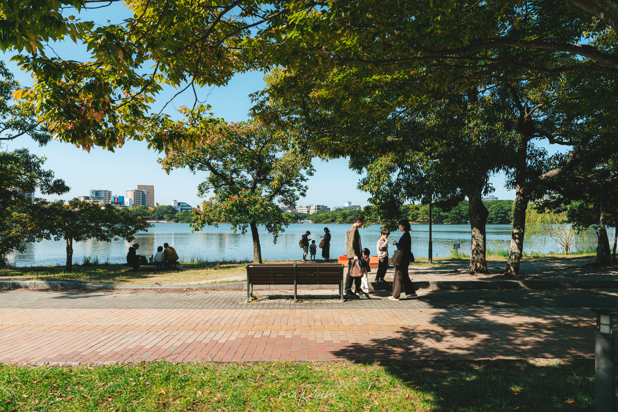 45분 정도 걸어서 도착한 오호리공원. 뭐 이미 후쿠오카 관광지로 너무나 유명한 곳이라 소개는 따로 필요 없을 것 같습니다. 우리나라의 석천호수공원 비슷한 분위기인데, 공원의 규모는 여기가 훨씬 크고 깔끔한 느낌이었습니다. 호수를 바라보며 멍 때리기도 좋고 물 위에 둥둥 떠다니는 오리배나 실제 오리를 보는 맛도 있죠.