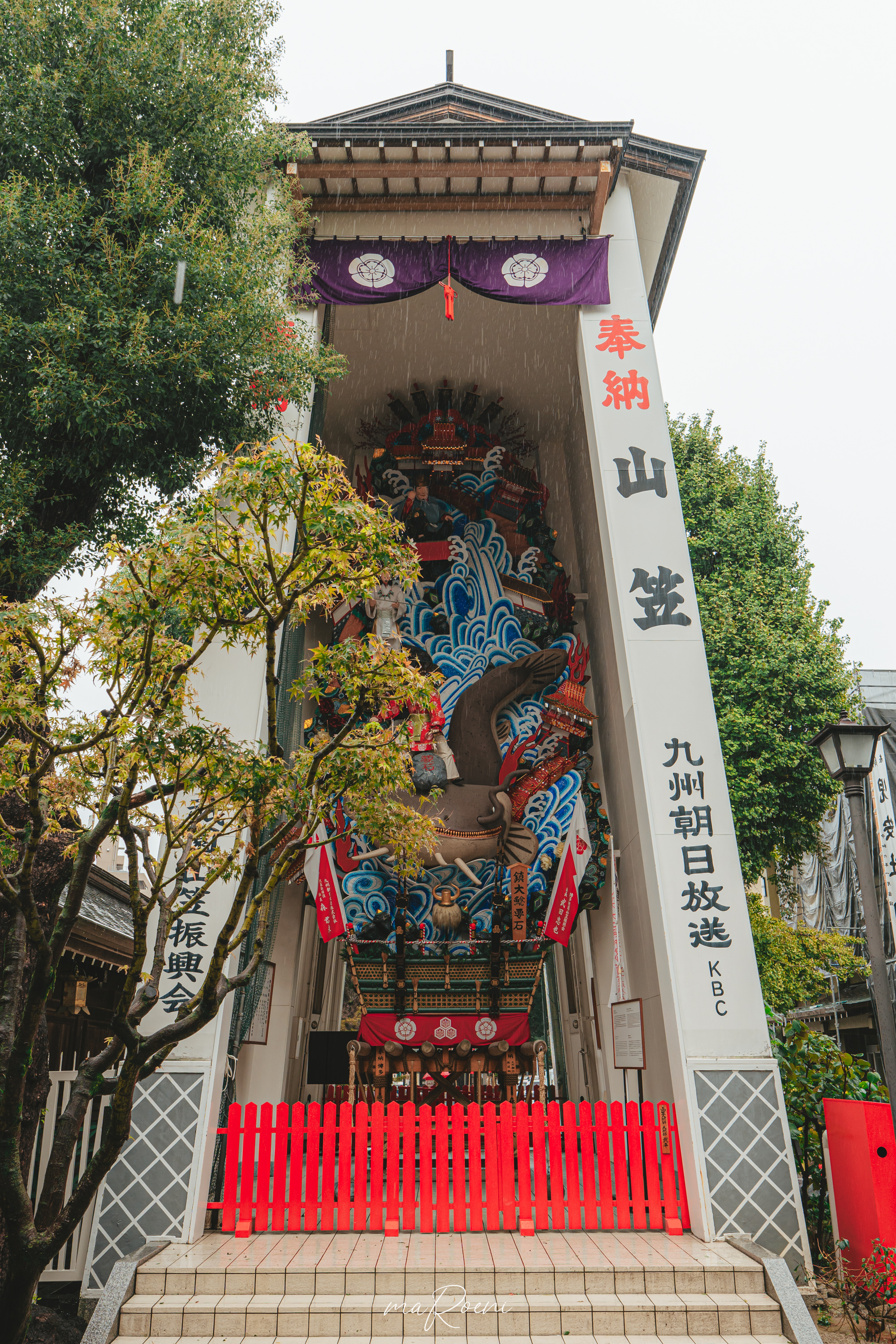 입구로 들어서면 이렇게 거대한 가마가 보입니다. 찾아보니 요건 마츠리(마을 축제)같은걸 할 때 사용한다고 하는데요. 후쿠오카의 최대 축제라 불리는 하카타 기온 야마카시가 구시다신사를 중심으로 개최되기 때문이라고 합니다. 무게만 약 1톤 정도라고 하며, 여러 장정들이 훈도시를 입고 이 가마를 짊어지고 달리는 모습이 상당히 이색적이라고 해요.