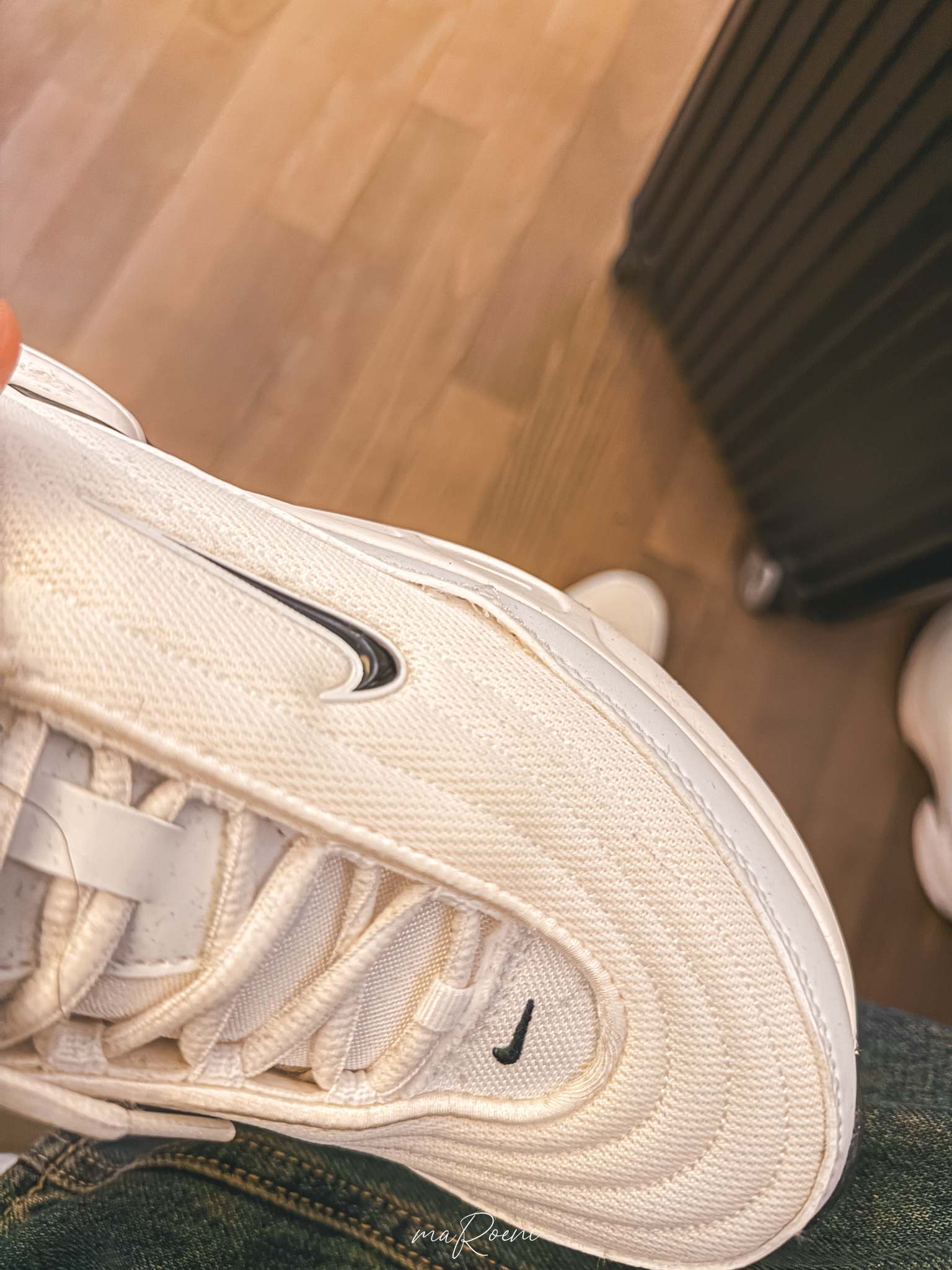 뻐킹뻐킹!!! 인천국제공항에 도착해서 보니.. 나이키 운동화 에어맥스 포털 옆구리가 터져있더라구요..? 신은지 3시간도 안됐는데!! 회사였다면 바로 포장해서 반품을 진행하면 되겠지만.. 이미 비행기시간은 코앞.. 탑승장 앞에서 휴식하다가 발견한 거라서 어떻게 대처해야 할지 앞이 깜깜해지더라구요. 그래서 일단 출국하기 전에 이 사진을 찍어서 ABC앱에 문의를 남기고 일본에 도착하자마자 로밍 돌리고 답변을 확인해 봤더니..