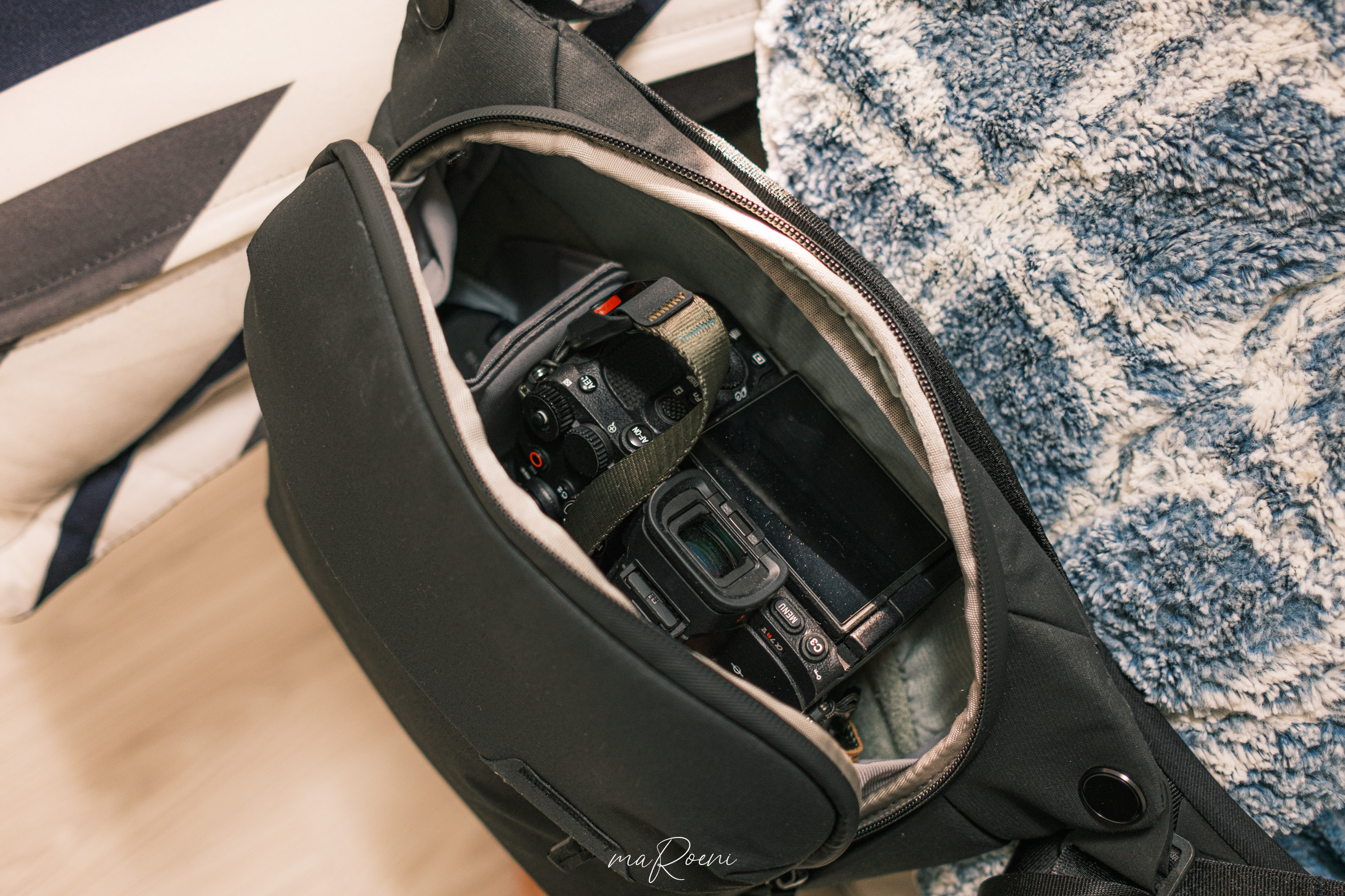 솔직하게 말하면 제가 원래 슬링백은 진짜 싫어했어요. 왜냐구요? 어깨가 박살 날 것 같았기 때문이죠. 슬링백은 크로스백처럼 옆으로 매는 가방인데요. 매고 다니는 카메라가 무겁고 불편해서 가방을 사는 건데, 가방마저도 크로스라면 다를 게 없다고 느껴졌기 때문이었어요.