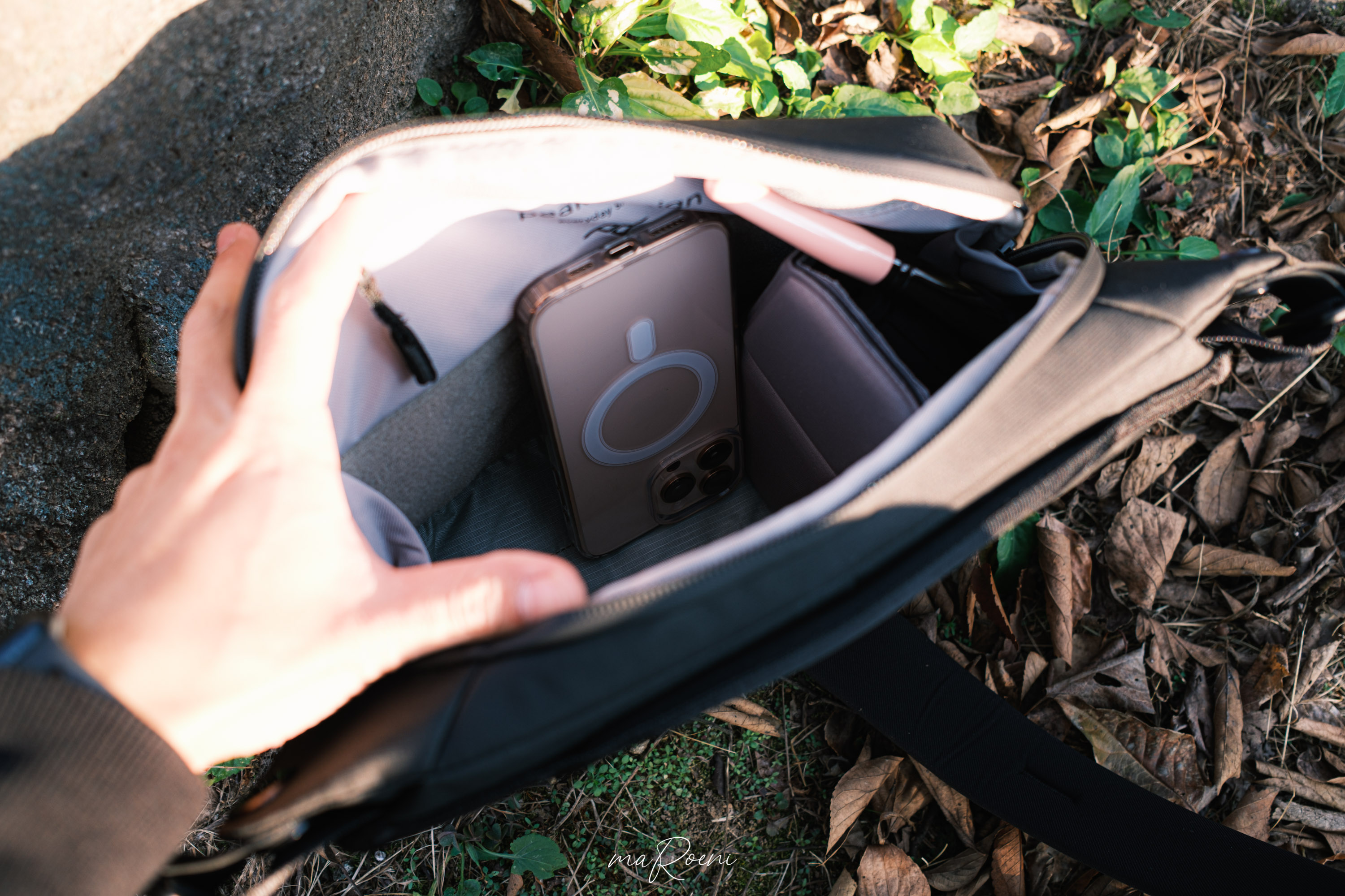 카메라 슬링백이지만 데일리용으로도 손색이 없어 보여서 저는 평소에도 자주 픽디자인 슬링백 6L를 매고나가는 일이 많은데요. 이게 슬링백만 놓고 보면 빵빵(?)해보이기도하고 둔탁해보이기도 하지만 수납력이 좋고 끈을 조절하기가 편해서 요즘에는 픽디 슬링백만 계속 들고 다니는 것 같아요!