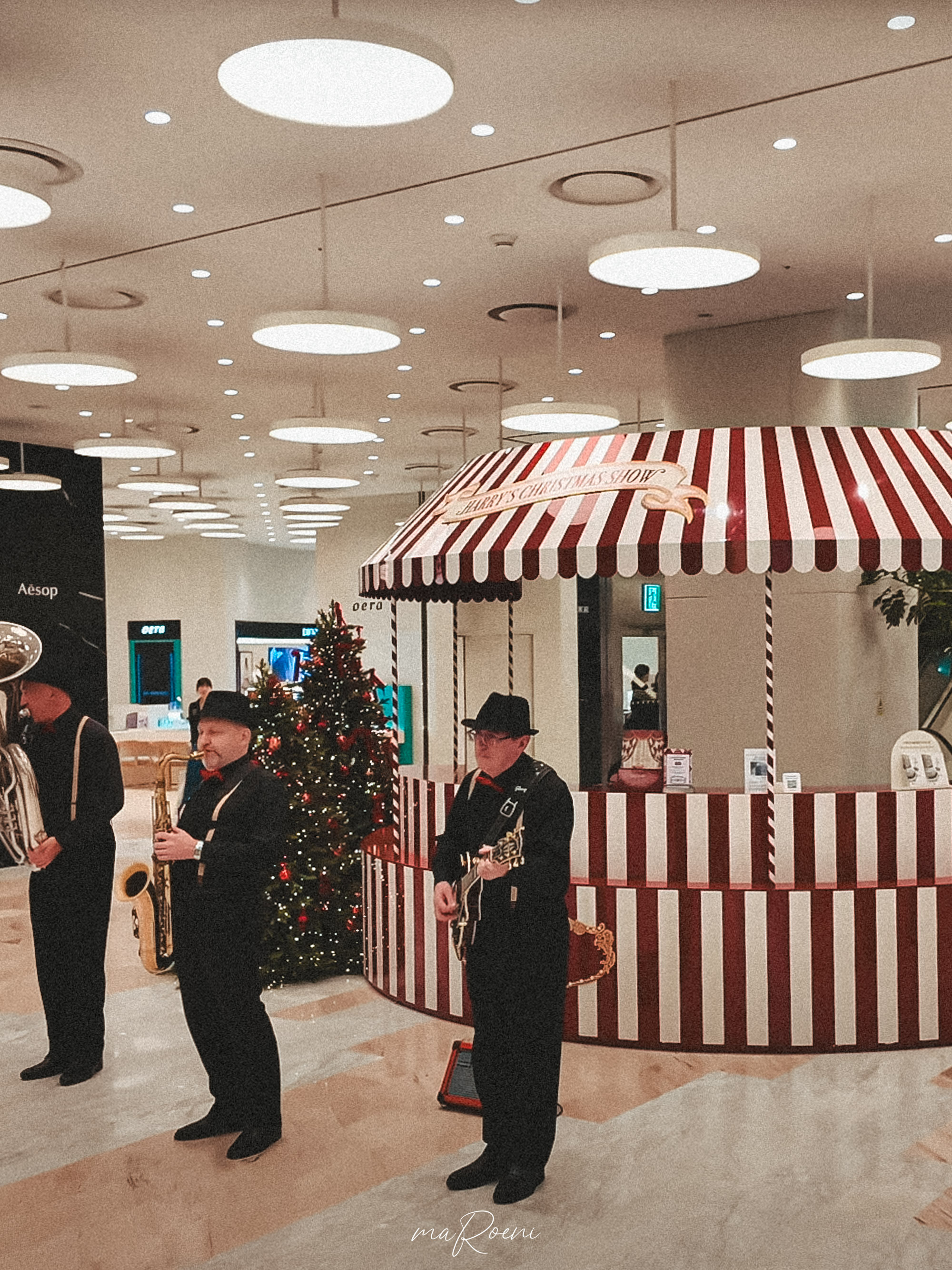 모든 현대백화점이 그런지는 모르겠는데, 저희집 근처 현대백화점에서는 더현대 서울 크리스마스 빌리지의 축소판을 경험해볼 수 있었는데요. 저번달에 신발을 교환하러 갔을때 보니깐 약간 종이인형극..? 그런쪽 테마인 것 같았어요.