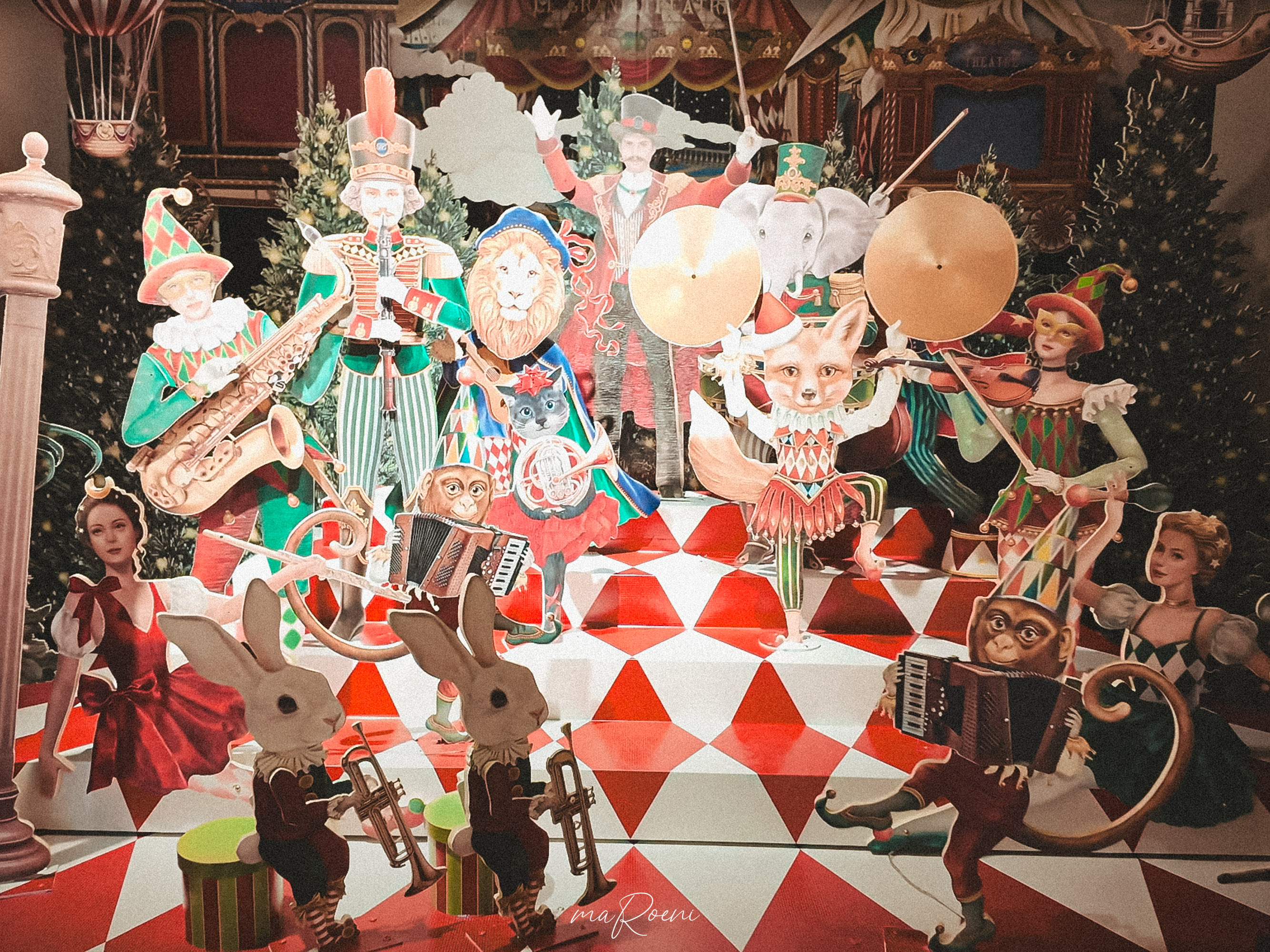 크리스마스의 따뜻한 느낌보다는 약간 기괴한.. 그런 느낌이 들어요. 그런데 또 전체적인 색감을 크리스마스에 잘 어울리는 색으로 뽑아내서 크리스마스가 아닌 것 같은데, 또 감성은 크리스마스인 것 같은.. 그런 묘한 서커스를 관람하는 기분이었습니다.