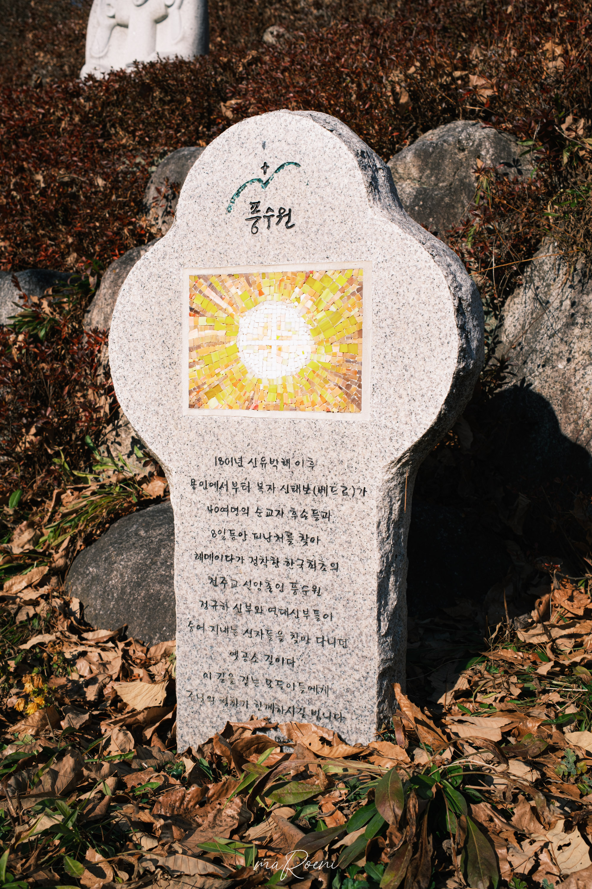 풍수원성당 정문을 기준으로 왼쪽 길이 십자가의길인데요. 산책로 옆에 신앙과 관련된 글귀들이 있어서 천천히 읽으면서 올라가는 맛이 있더라구요. 어렸을 때 교회를 잠깐 다닌 적이 있었는데 그게 요번 여행에서 은근히 많은(?) 도움이 되었답니다.