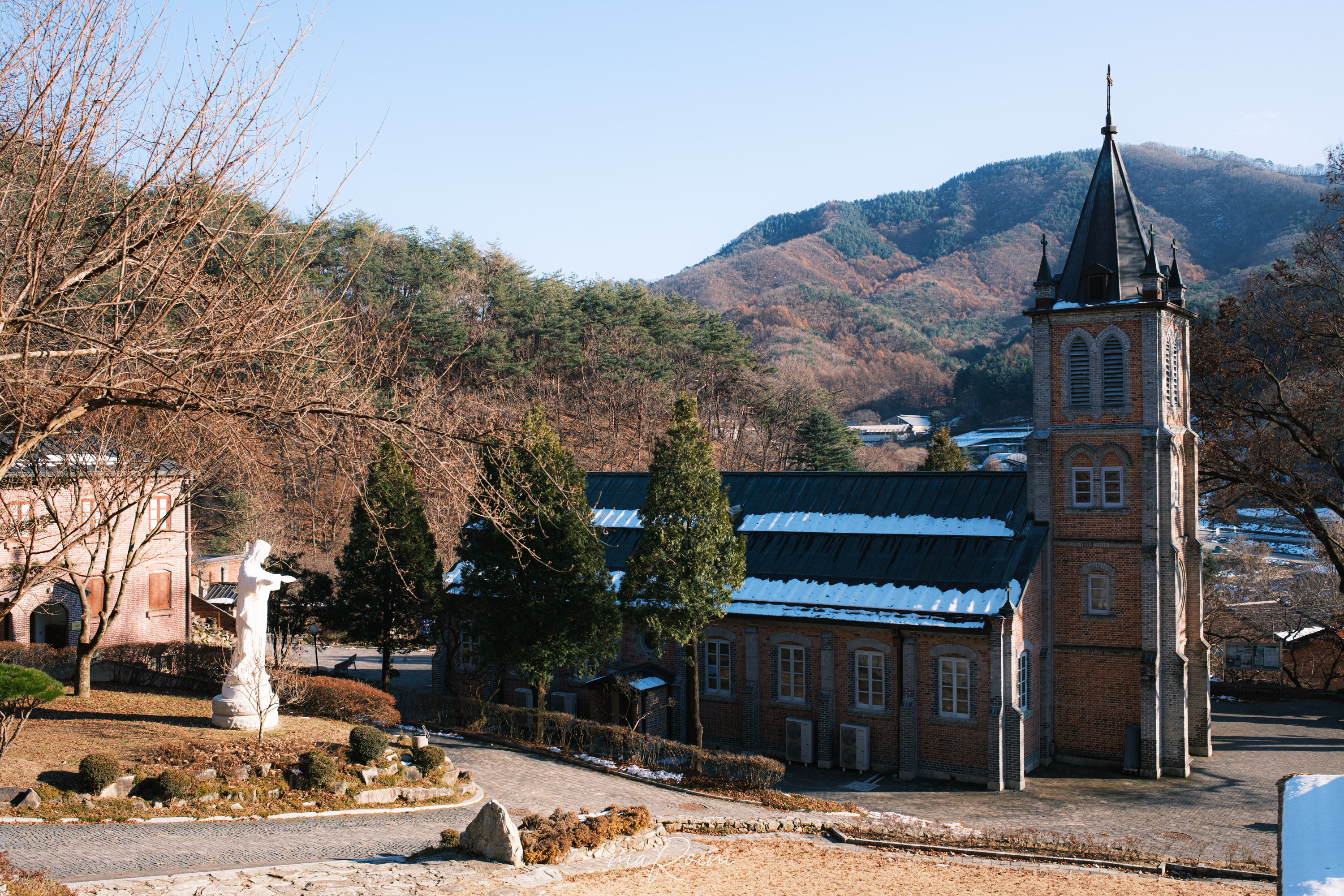 풍수원성당. 꼭 한번 가보고 싶었거든요. 원래 성당의 그런 조용하면서도 엄숙한 분위기를 좋아하는데, 안 그래도 조용한 횡성.. 거기다가 산속에 성당이 있다니! 사진을 찍으면 얼마나 예쁠지 생각만 해도 가슴이 막 두근거렸어요.