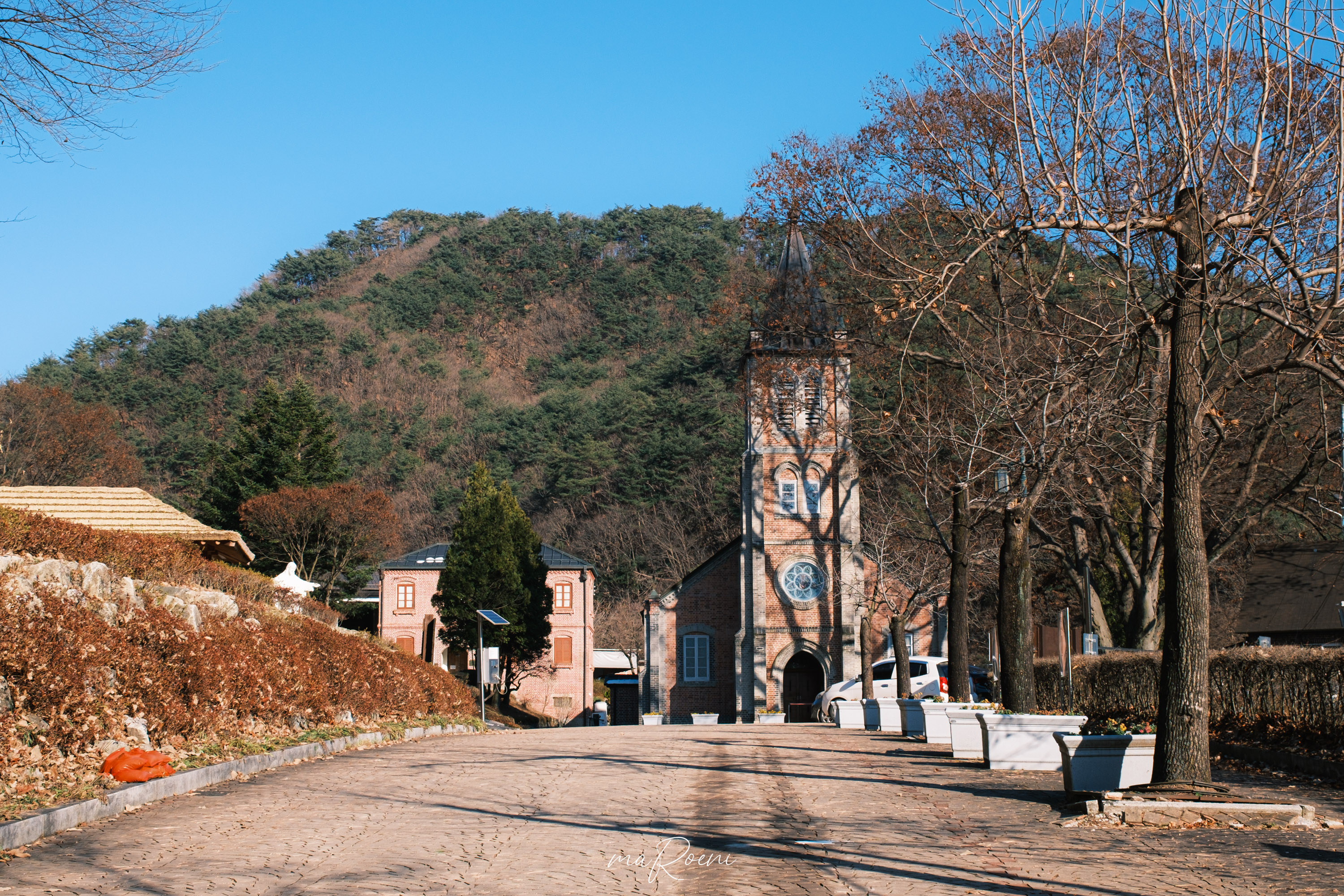 풍수원성당은 입구에서 바라봐도 아름답지만, 마을 쪽에서 올려다보는게 훨~씬 더 예쁘게 보인답니다.