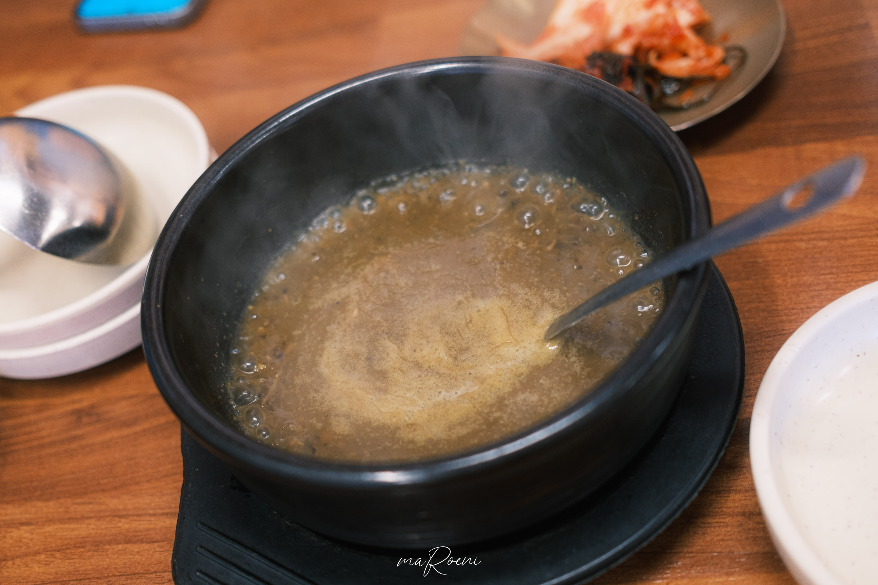 김은 기본적으로 4장이 나오는데, 4장 추가가 1,000원. 밥이랑 전골로도 충분하지만 김이 진짜 치트키 수준이라서 우리는 한 번 추가해서 먹었다.