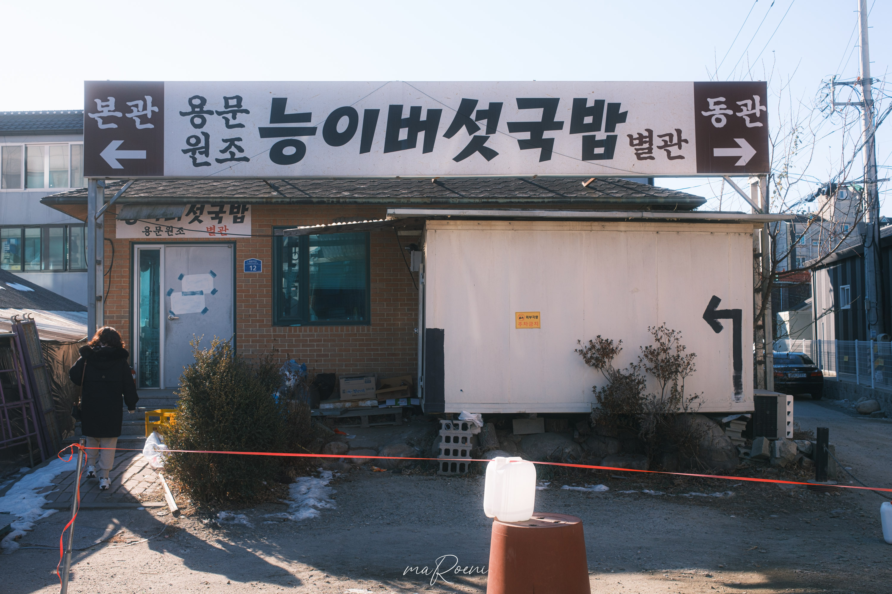 10년 전쯤에 나는 양평 2박 3일 여행을 마치고 용문역으로 돌아가면서 능이버섯국밥 본관을 발견했다. 여행 내내 치킨이나 피자, 곱창같이 기름기 좌르르르 흐르는 음식들만 섭취해서 장 상태가 매우 좋지 못했었기에 국물로 속을 시원하게 쓸어내리고 싶었었는데 정말 잘 된 일이다 하는 마음으로 이 식당의 문을 두드렸다.