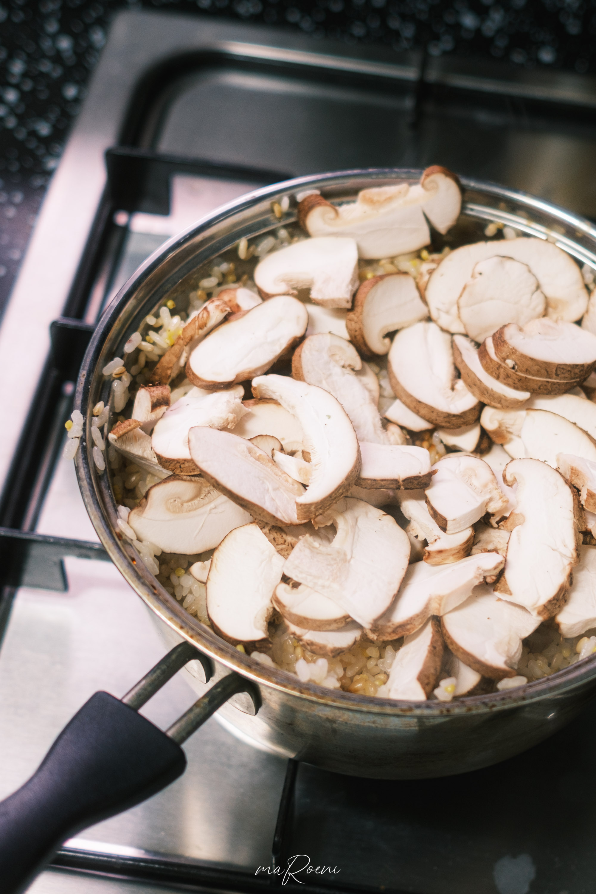 버섯이 가득 들어있는 전골을 미친듯이 먹고 있었는데, 이번에는 버섯밥이 나왔다.