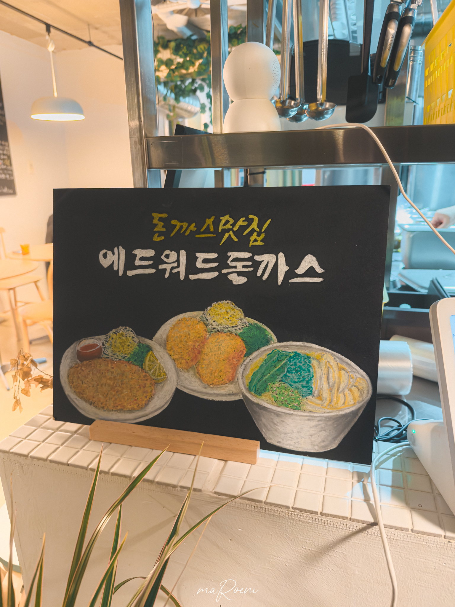 뭘 판매하는 식당인지 둘러보는데, 매장 앞에 작은 입간판을 발견. 오마이갓;; 돈까스집이었다. 돈까스를 먹으러 가는 길에 발견한 신생 돈까스집이라니?! 이거 매우매우 흥미롭군요..?