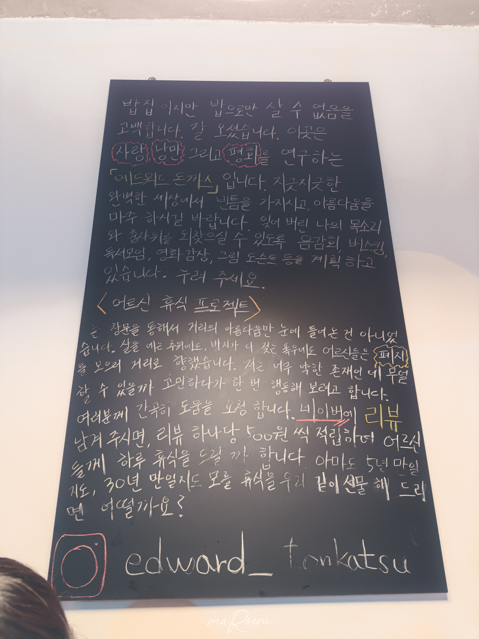 매장 이름은 에드워드 돈까스지만, 사장님에게서 느껴지는 분위기는 약간 최강록 셰프 스타일이셨다. 조용조용하면서 나근나근한 분위기의 그런 느낌s