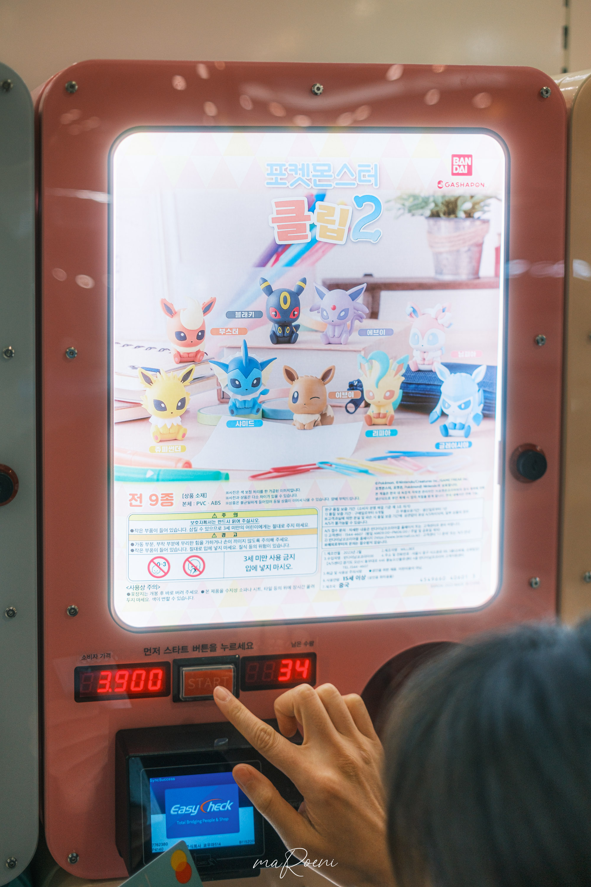 한판에 3900원. 카드 찍고 버튼 한번 누르면 3900원이 나간다. 와이프가 원하는건 이브이의 풀속성 진화형인 리피아. 다른 건 다 모았는데 리피아만 없다고 했다.