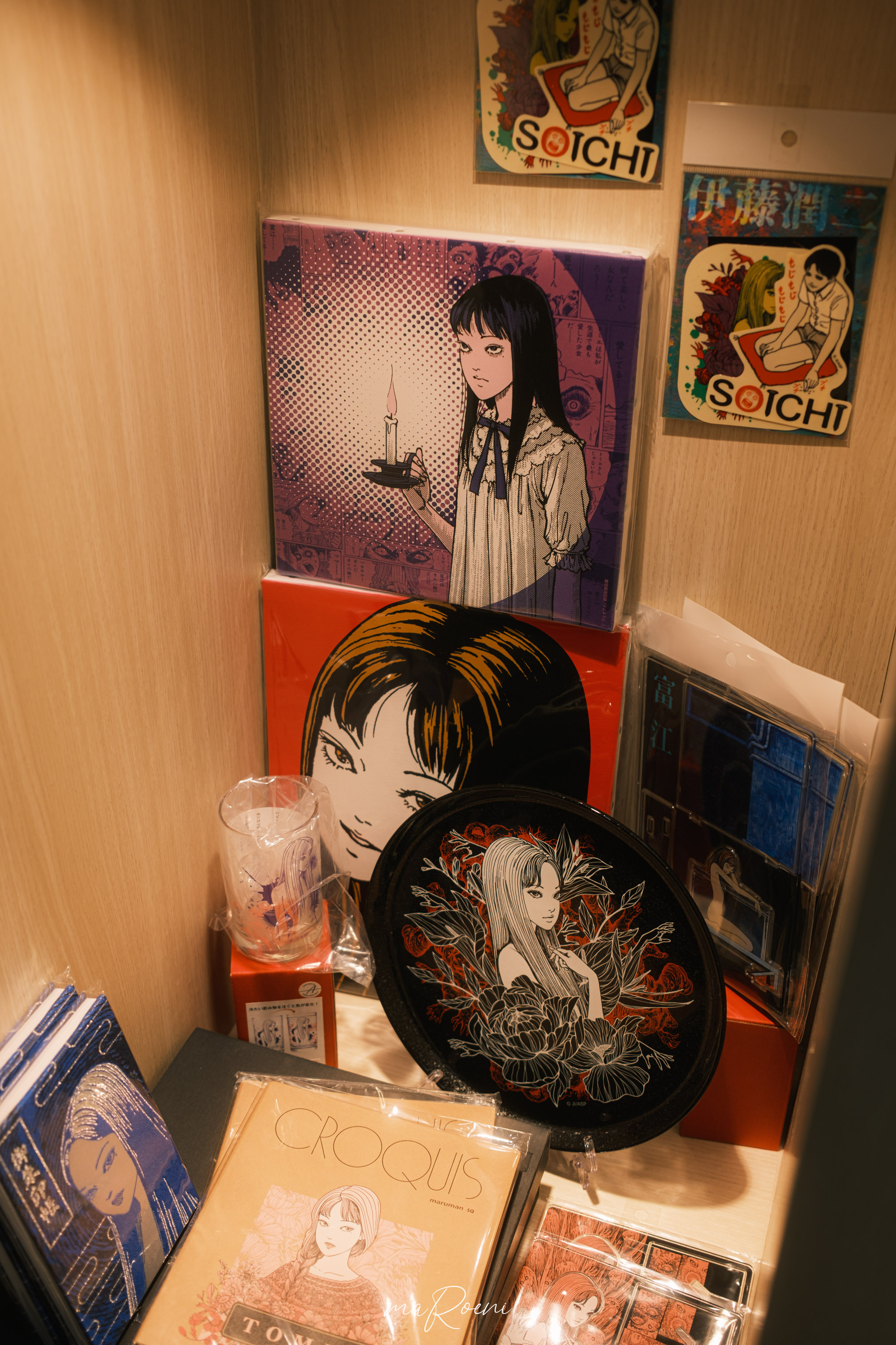 내가 가장 사고 싶었던 이토준지 굿즈들. 만화 속에 다른 매력적인 캐릭터들도 많지만, 이토준지 하면 역시 토미에가 메인으로 손꼽히는 모양이다. 노트도 있고 키링도 있었는데, 와이프가 그런 저주받은 아이템 구매했다가 꿈자리 뒤숭숭해질 수 있으니깐 구매할 생각은 꿈에도 하지 말라고 해서 포기.