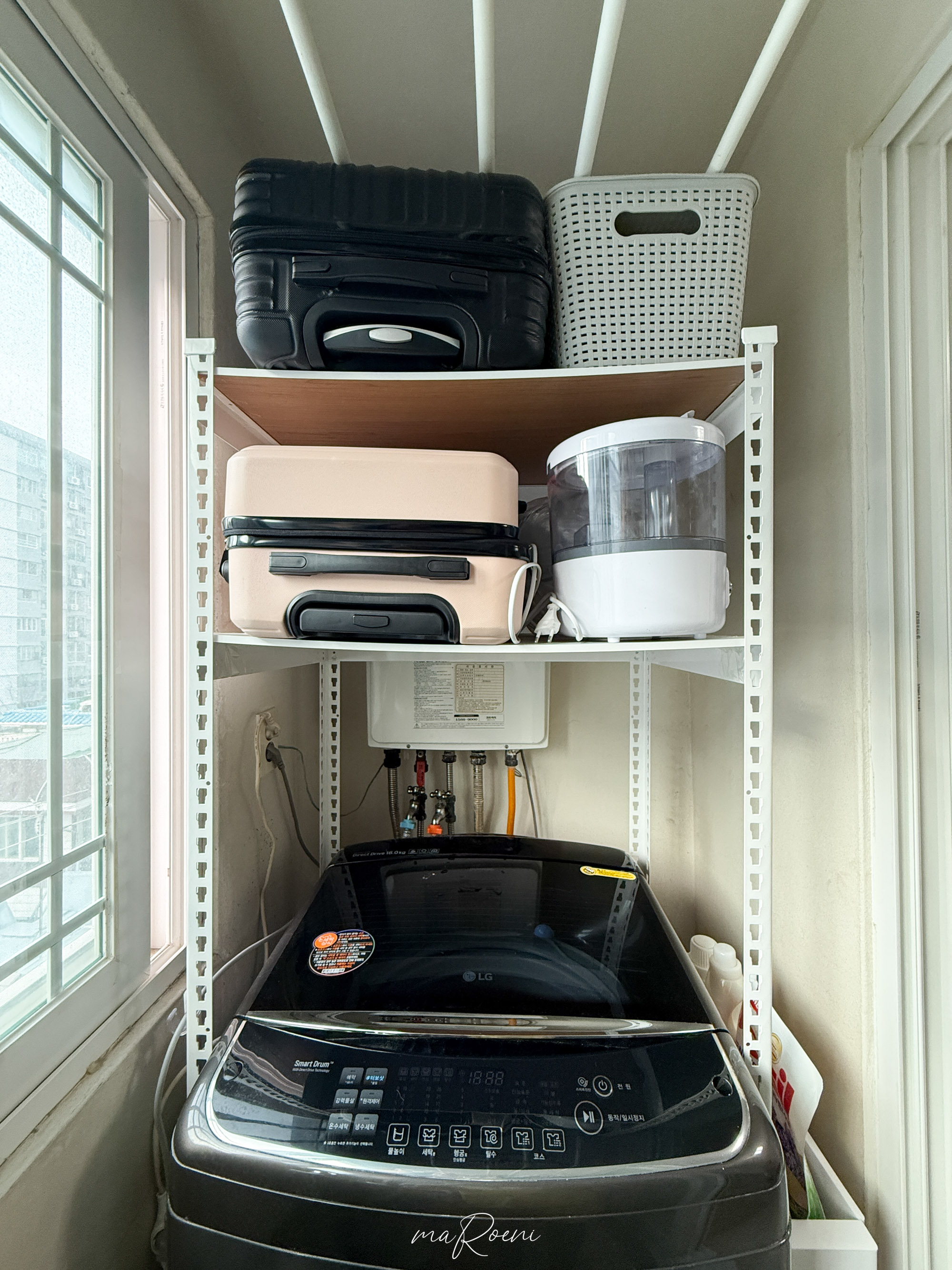 우리 집 보일러는 1.5평 정도 되는 베란다에 있다. 원래 세탁기만 깔끔하게 두려고 했지만, 온갖 잡동사니 짐들이 많아서 세탁기 위로 짐을 차곡차곡 쌓아놓는 바람에 시작부터 애좀 먹었다.