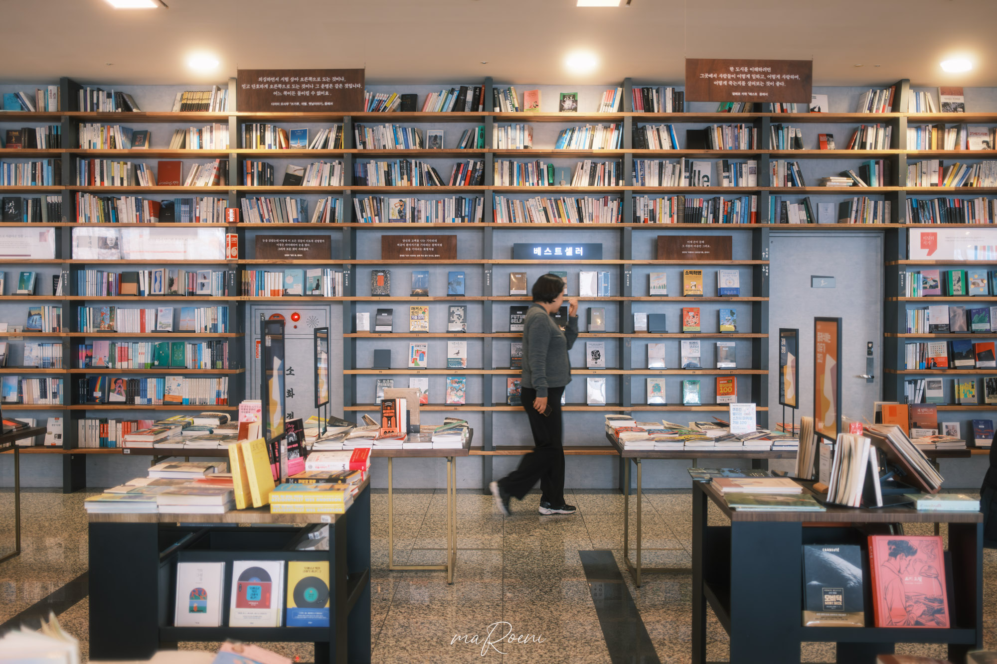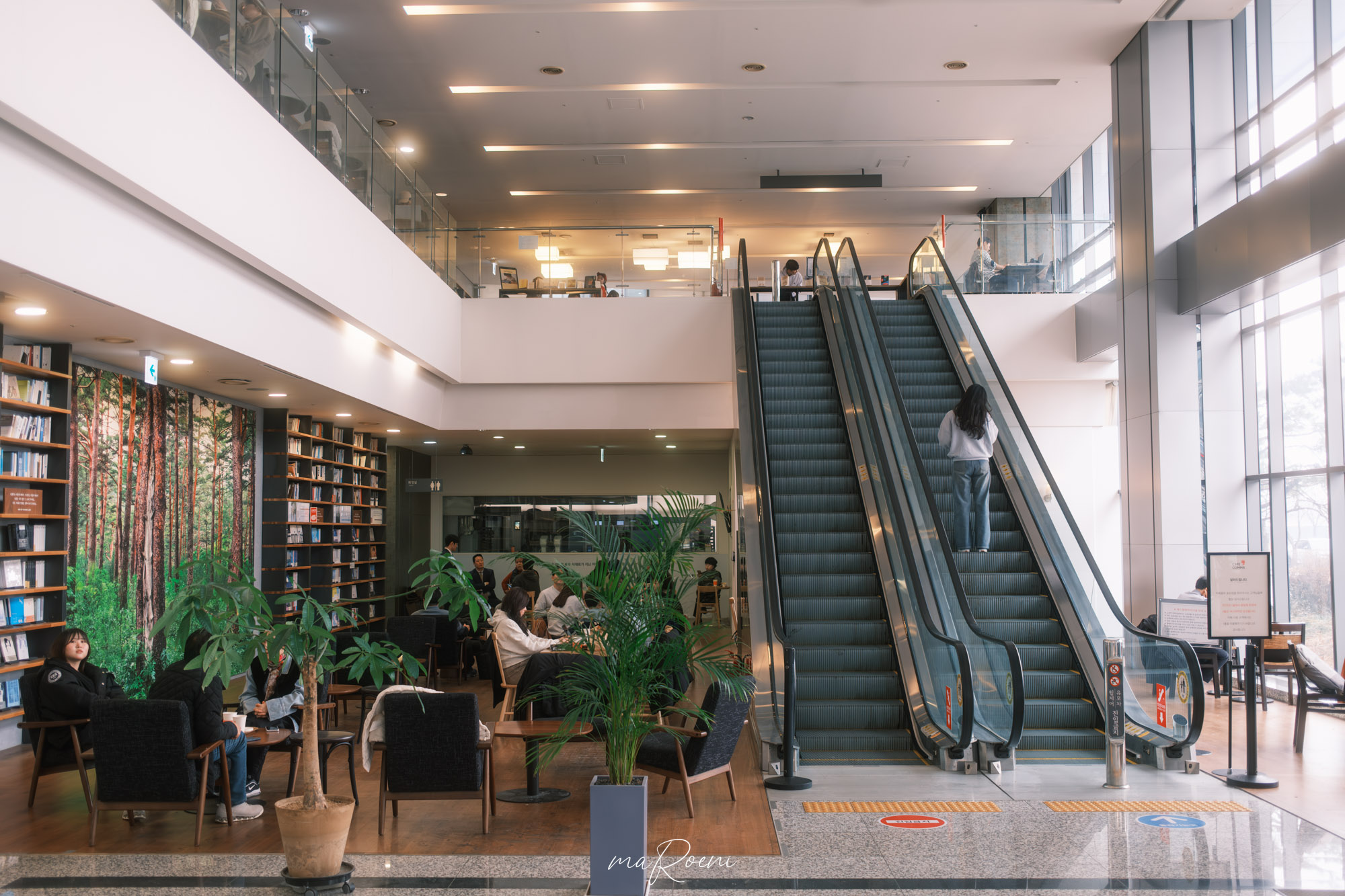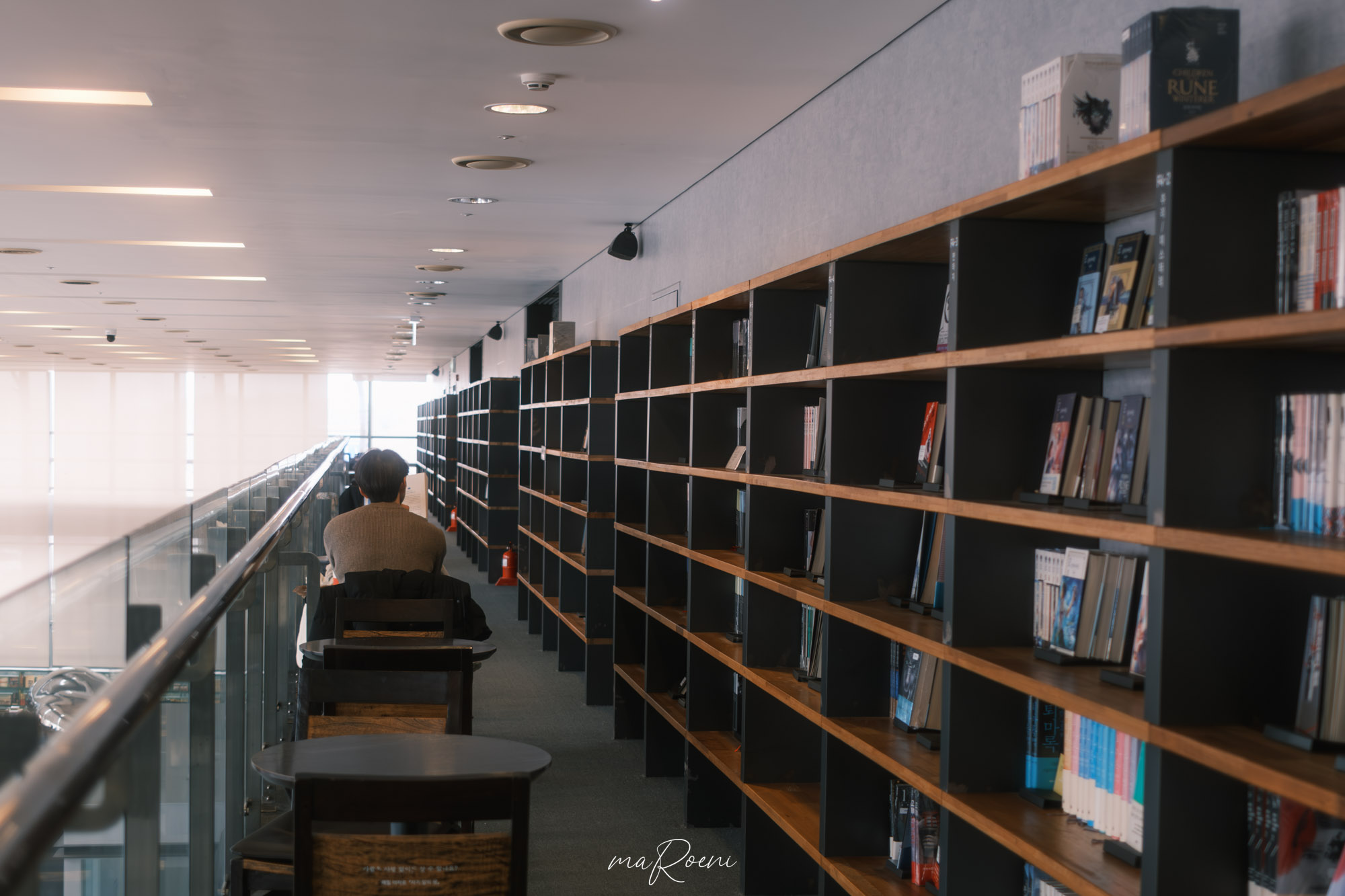 에스컬레이터를 타면 2층으로 올라갈 수 있는데, 2층에도 다양한 책들이 있고 1층보다는 더 편안해 보이는 테이블이 있었다. 분위기만 본다면 1층보다는 2층이 훨씬 더 좋아 보였다. 근데 히터열기가 전부 다 2층으로 올라와서 2층은 좀 후덥지근했음.