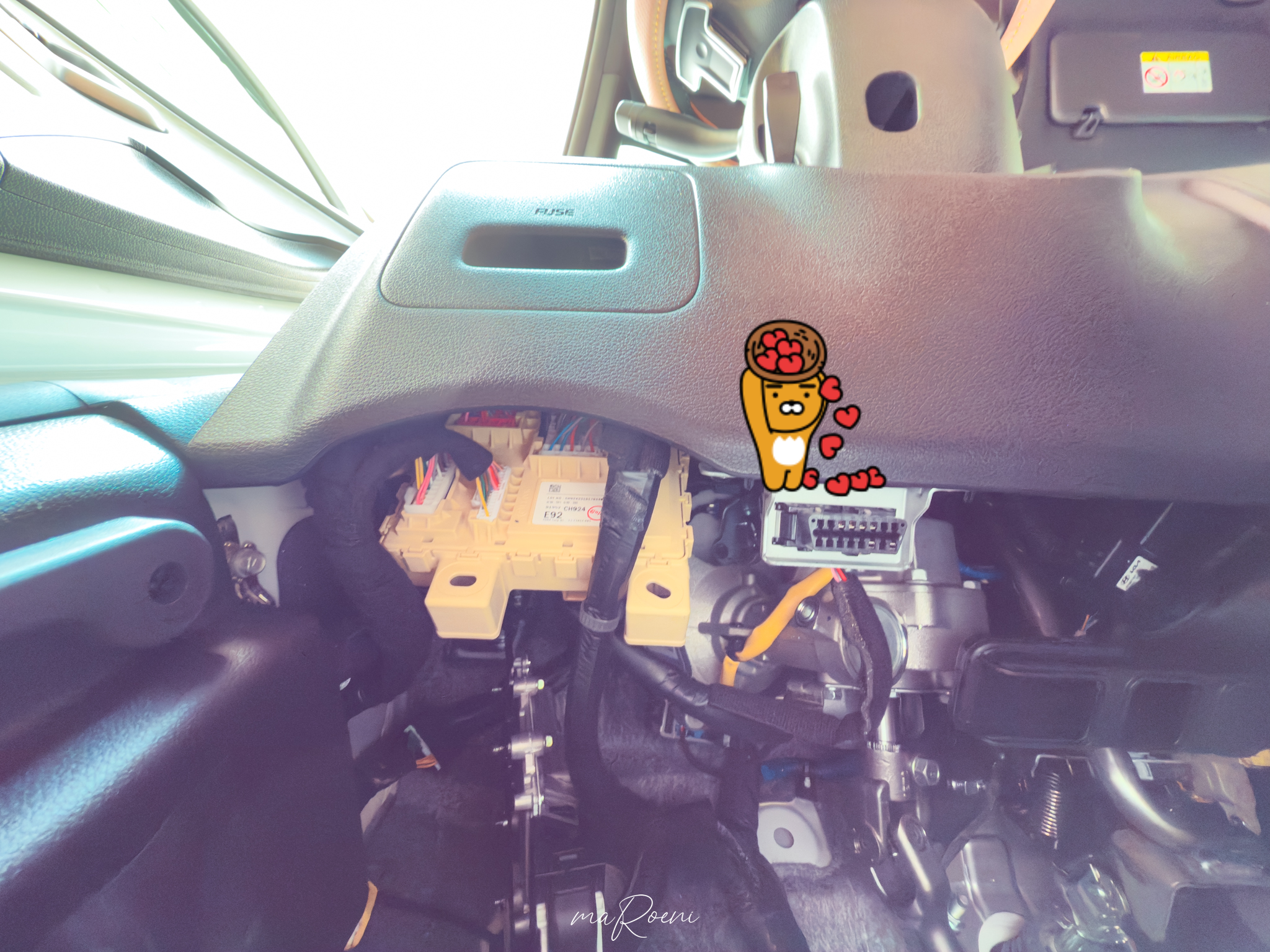설치를 하려고 차량에 탑승하니.. OBD 케이블이 어디 있는지 못 찾겠음.. 참고로 나는 단 한 번도 퓨즈박스인가 뭐시기인가 하는 저 공간을 열어본 적이 없음.. 그래서 유튜브 영상으로 정보를 모아봤다.