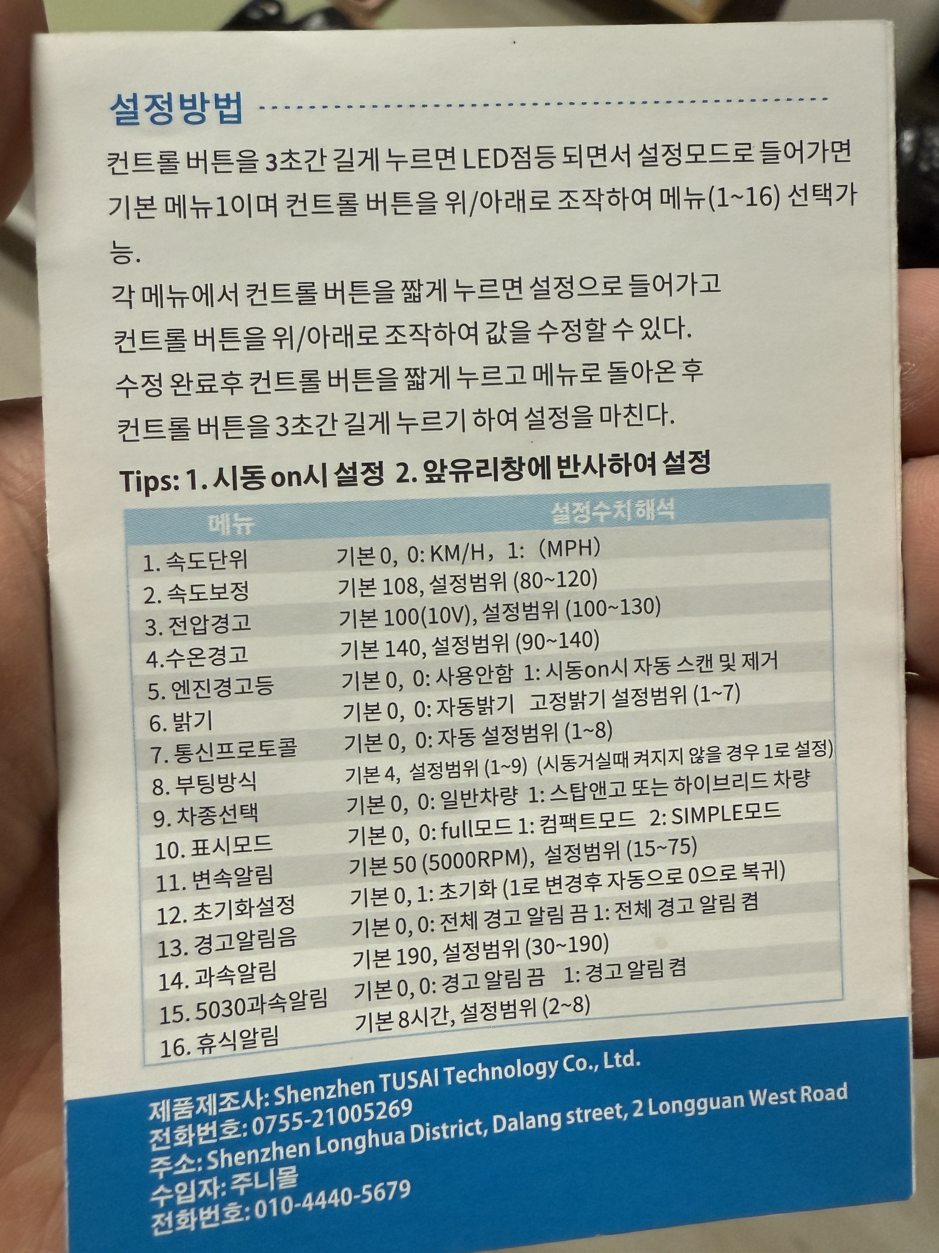 - 속도가 제대로 인식되지 않을 때 : 7번 메뉴를 8로 변경