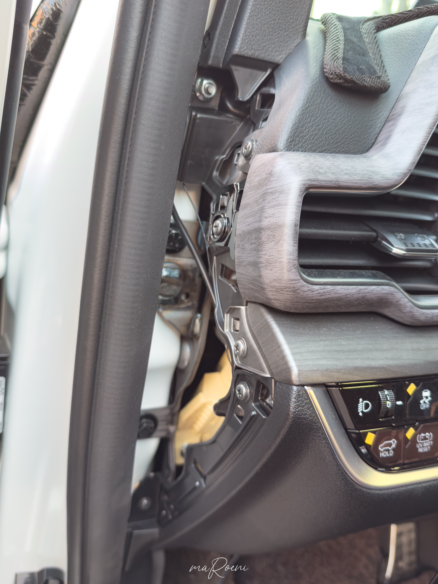 우선 운전석 웨더스트랩(고무)를 살짝 떼주고 퓨즈박스 옆판 따서 선을 빼서 A필러 쪽으로 넘겨주고