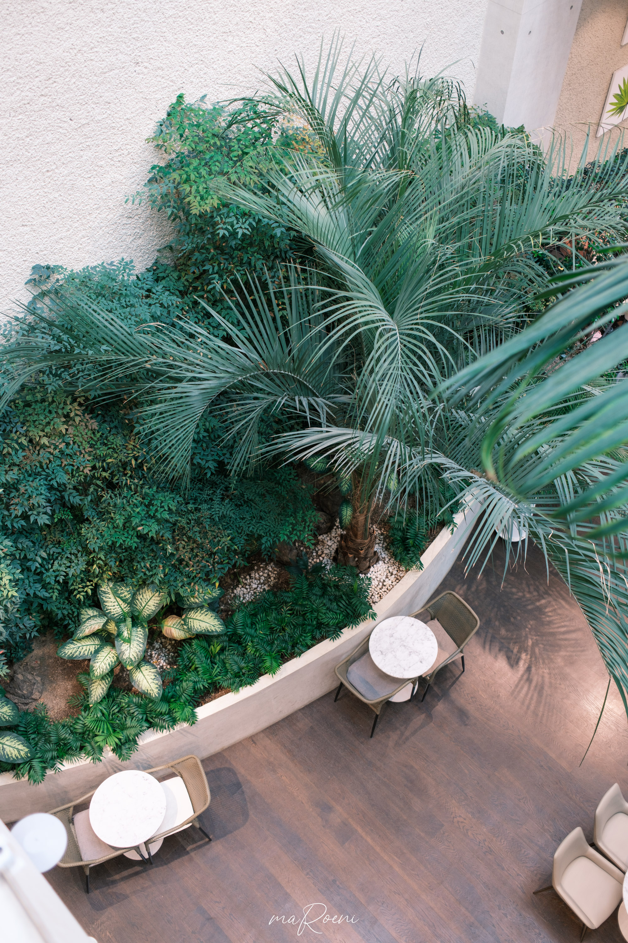 앤드테라스 1층은 식물과 밀접하게 붙어있을 수 있기에 수목원 카페의 감성을 조금이라도 느낄 수 있는 공간이다. 테이블 사이사이마다 커다란 나무들이 있거나 대형 식물들이 자라나고 있어서 초록초록한 감성을 챙길 수도 있으니 말이다.