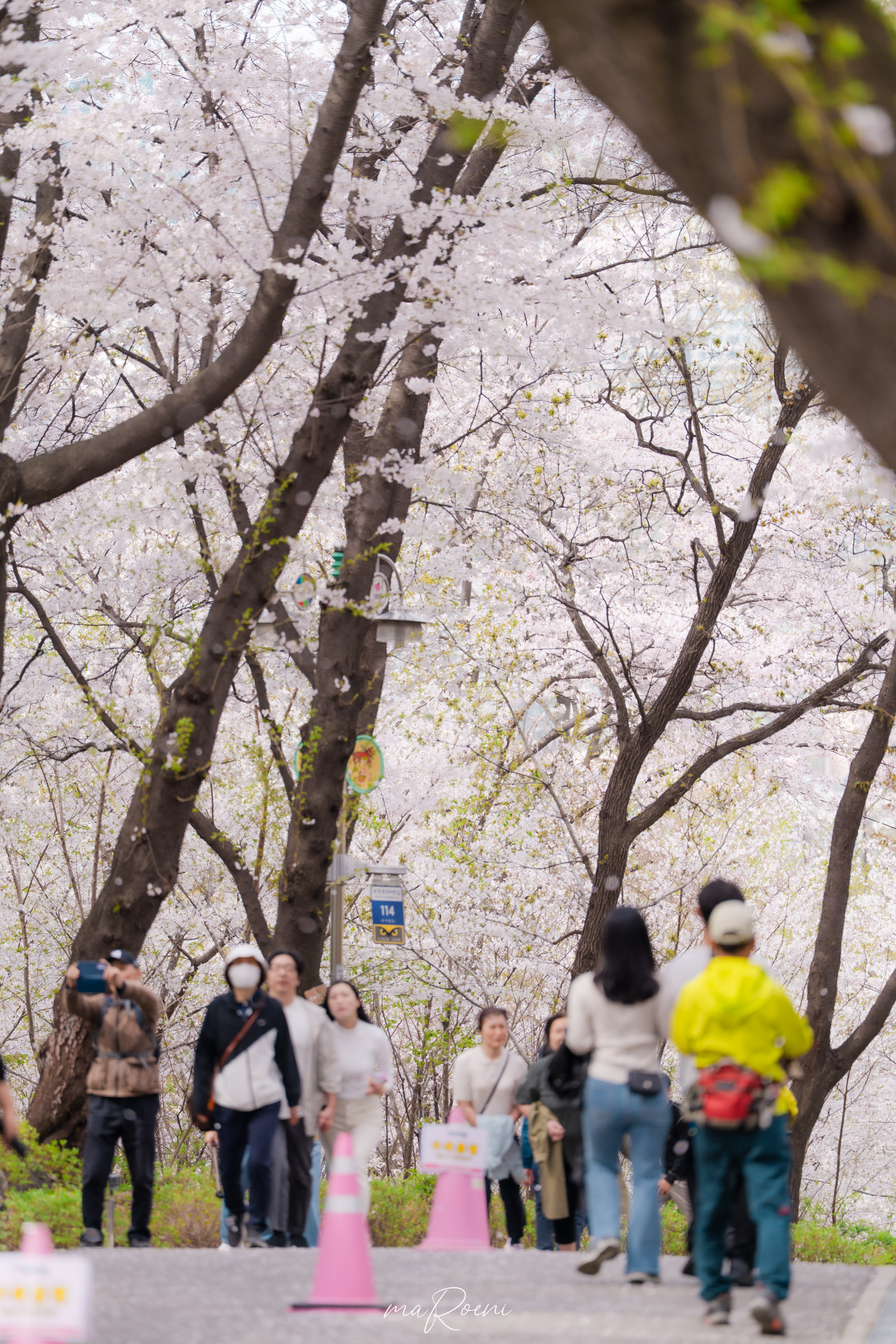 여기도 벚꽃, 저기도 벚꽃. 중랑천이나 다른 벚꽃 명소들은 주변 풍경들이 좀 볼만해서 어떻게 찍어도 사진들이 예쁘게 담기는 편인데, 도당산 벚꽃축제는 길도 좁은데 사람들은 많고.. 또 주변은 공장단지라서 그런가 내 스킬로는 사진을 예쁘게 담기가 참 어렵더라. 사실 이 문제는 매년 도당산 벚꽃축제를 올 때마다 느끼는 부분이다.