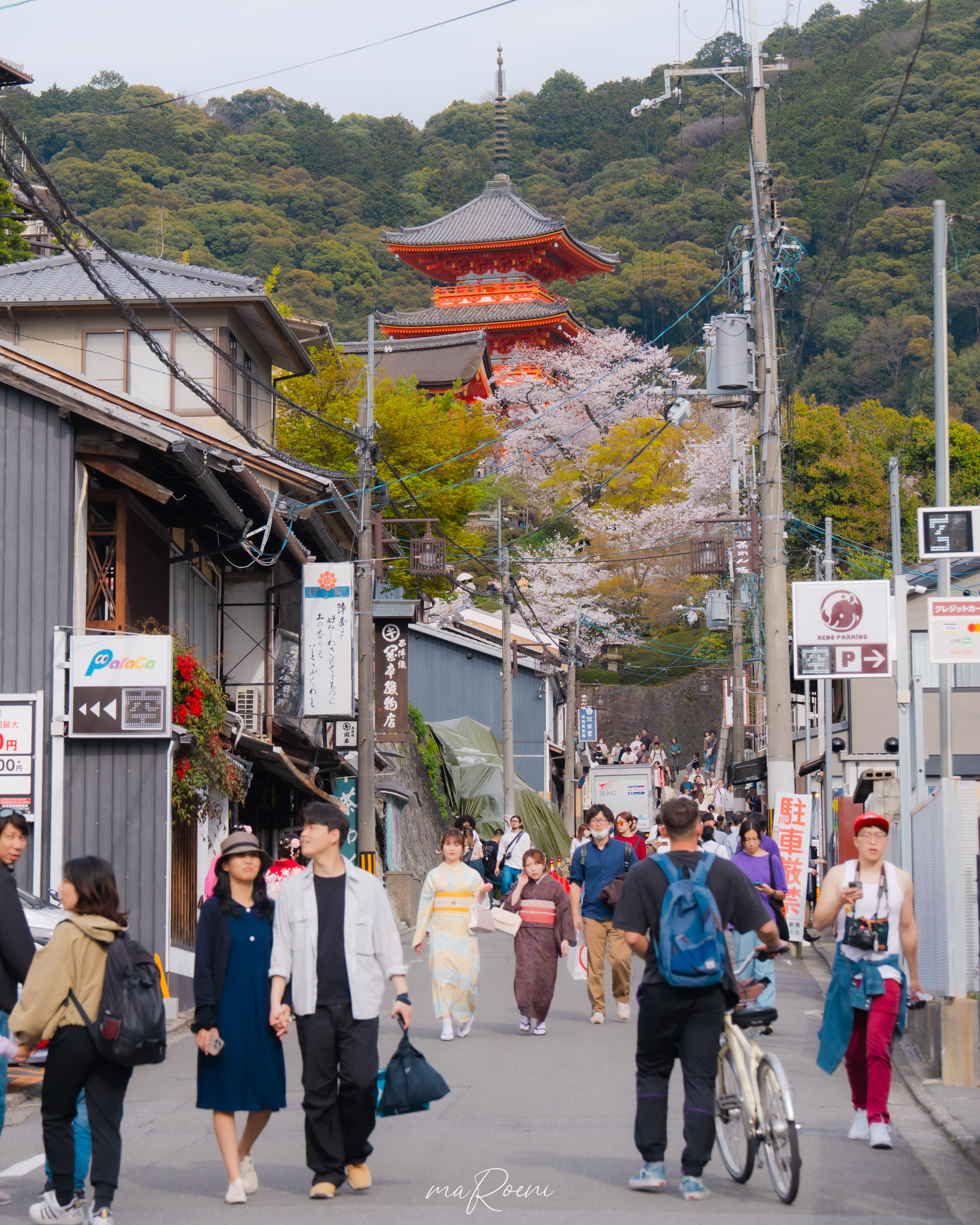 역에서 내리자마자 보이는 풍경. 그냥 벚꽃의 도시다. 벚꽃 시즌 일본 여행은 어딜 가나 아름답지만, 사원 위에서 내려다보는 도시와 벚꽃뷰 자체가 너무나도 사기적이라 다른데 갈 필요 없이 가와라마치역 부근이랑 기요미즈데라만 찍고 와도 비행기값을 했다고 볼 수 있다.