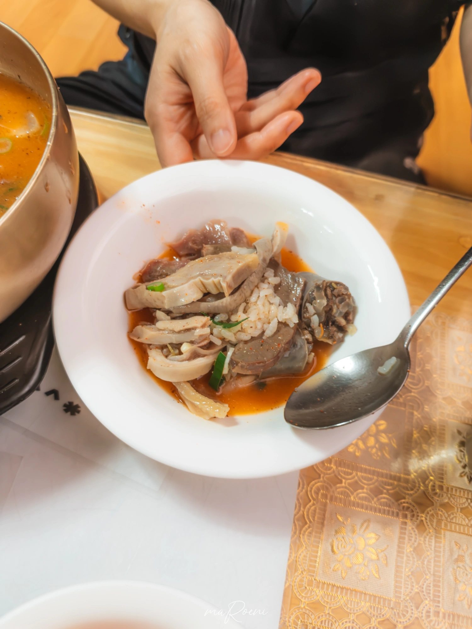 매번 먹으면서 느끼는건데, 여긴 진짜 안대 씌우고 국물만 떠먹이면 순대국인지 곰탕인지 헷갈릴 정도로 국물이 ㄹㅇ 깔끔하다. 여태 살면서 순대국밥 맛집이라고 찾아간 곳들 뺨 후릴 만큼 진짜 깔끔 그 자체!! 다른 집들은 아무리 잡내를 잘 잡는다고 해도 끝맛에서 올라오는 미묘한 똥꾸릉내를 잘 못잡는데, 여긴 그걸 완벽하게 잡아냈다고 볼 수 있음.