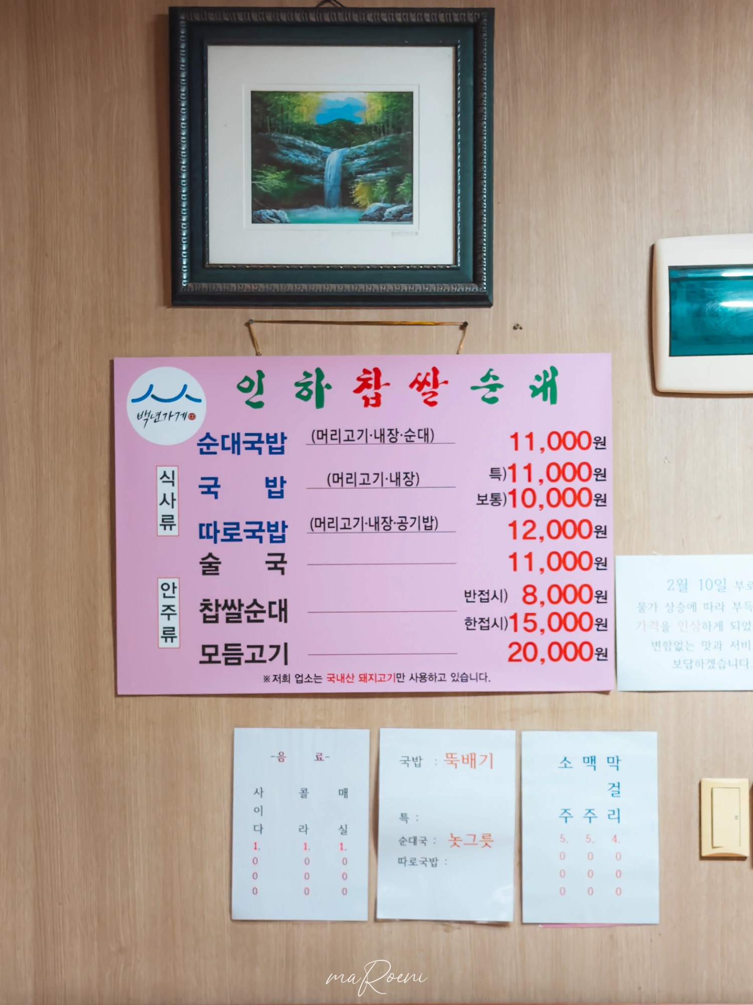 진짜 1985년부터 시작했구나;; 내가 1990년생인데 나보다 5살이 더 많다;; 어렸을때 이 앞을 수도 없이 지나다녔는데.. 그때는 문방구에 불량식품을 찾아다니기 바빴지, 얼큰한 순대국 맛을 찾아다닐리가 없기에 인하찹쌀순대의 존재 자체도 몰랐음.