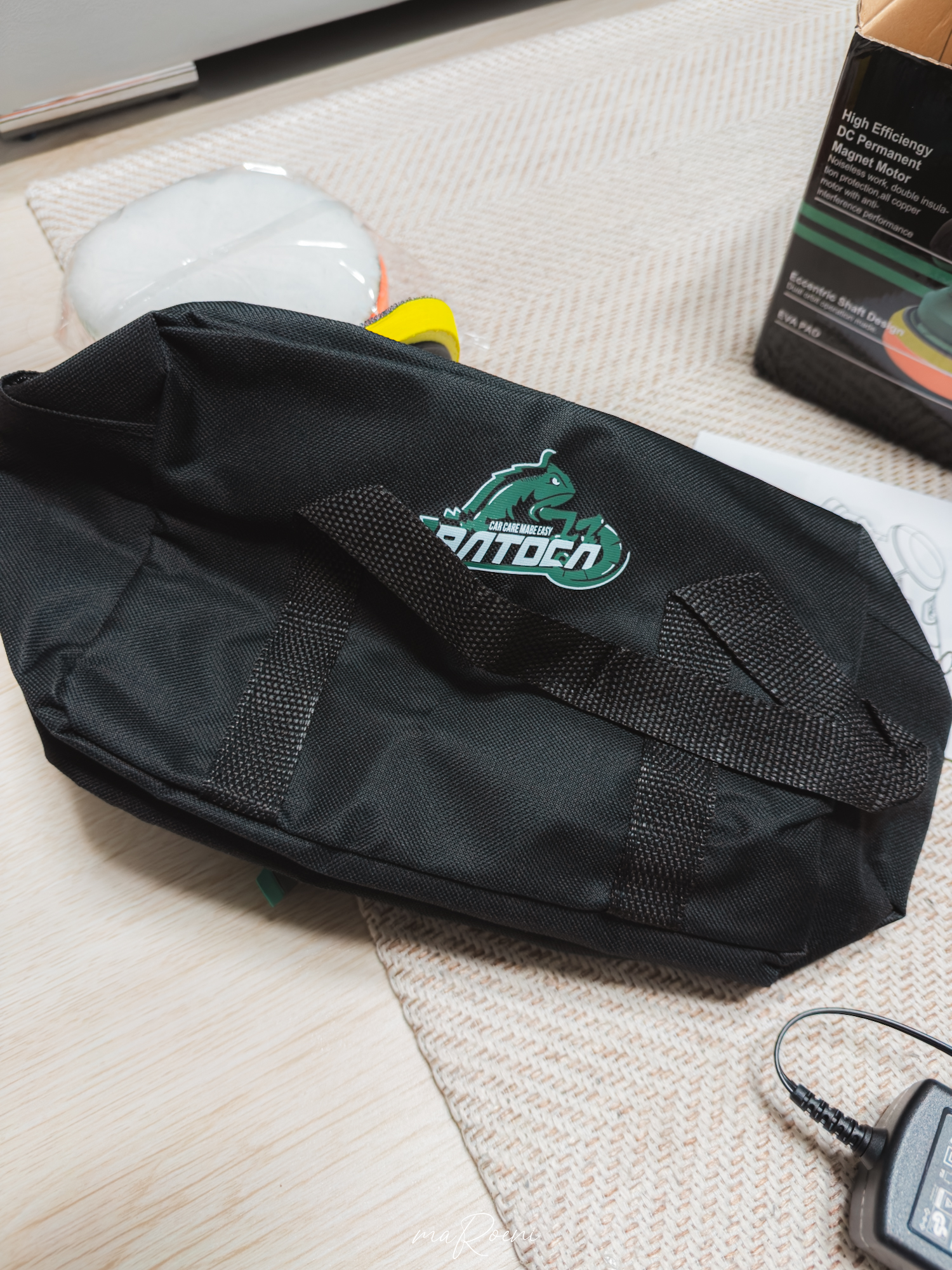 기본 구성품으로 주는 가방도 참 편리하다. 제품이랑 패드 몇 개 넣고 배터리까지 옆에 들어감. 세차할 때마다 이걸 어떻게 챙겨가지 싶었는데, 가방이 있으니 들고 다니기는 편하겠더라.
