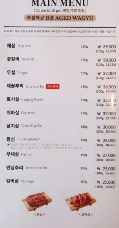 가격이 뭣이 중하랴. 맛만 좋으면 그만이지. 우리야 뭐, 맛만 좋다고 하면 가격 생각 안 하고 먹는 스타일인데, 부모님 시대는 확실히 우리와는 마인드가 다름. 순간 정적이 흘렀지만, 고기를 먹어보는 순간 가격 이슈는 싹 사라지고 대화의 포커싱이 맛으로 쏠렸음.