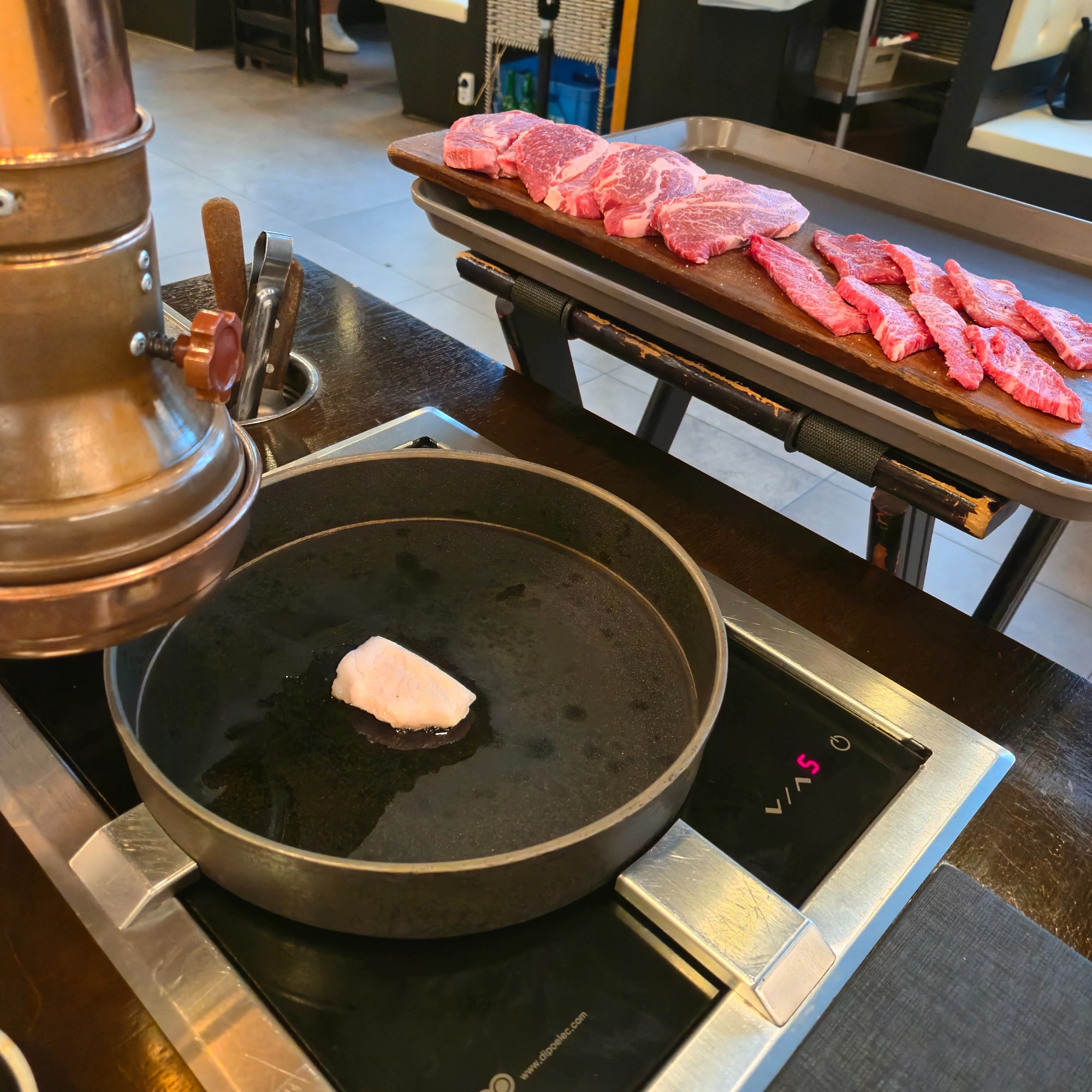 일본 여행을 하면서 와규를 처음 먹어봤었는데, 그때 직원분께서 진짜 맛있는 와규는 그냥 먹어도 맛있지만 와사비랑 먹었을때 가장 맛있다! 라는 멘트가 생각나서 소금도 안찍고 와사비랑 먹어봤는데.. OMG 걍 존맛탱. 입에서 녹는다는 표현이 여기서 나오는 거구나 싶더라. 씹는 순간 고기 안에서 육즙 흘러나오면서 살을 씹는 건지 비계를 씹는건지 모를 정도로 식감이 부드러웠음.