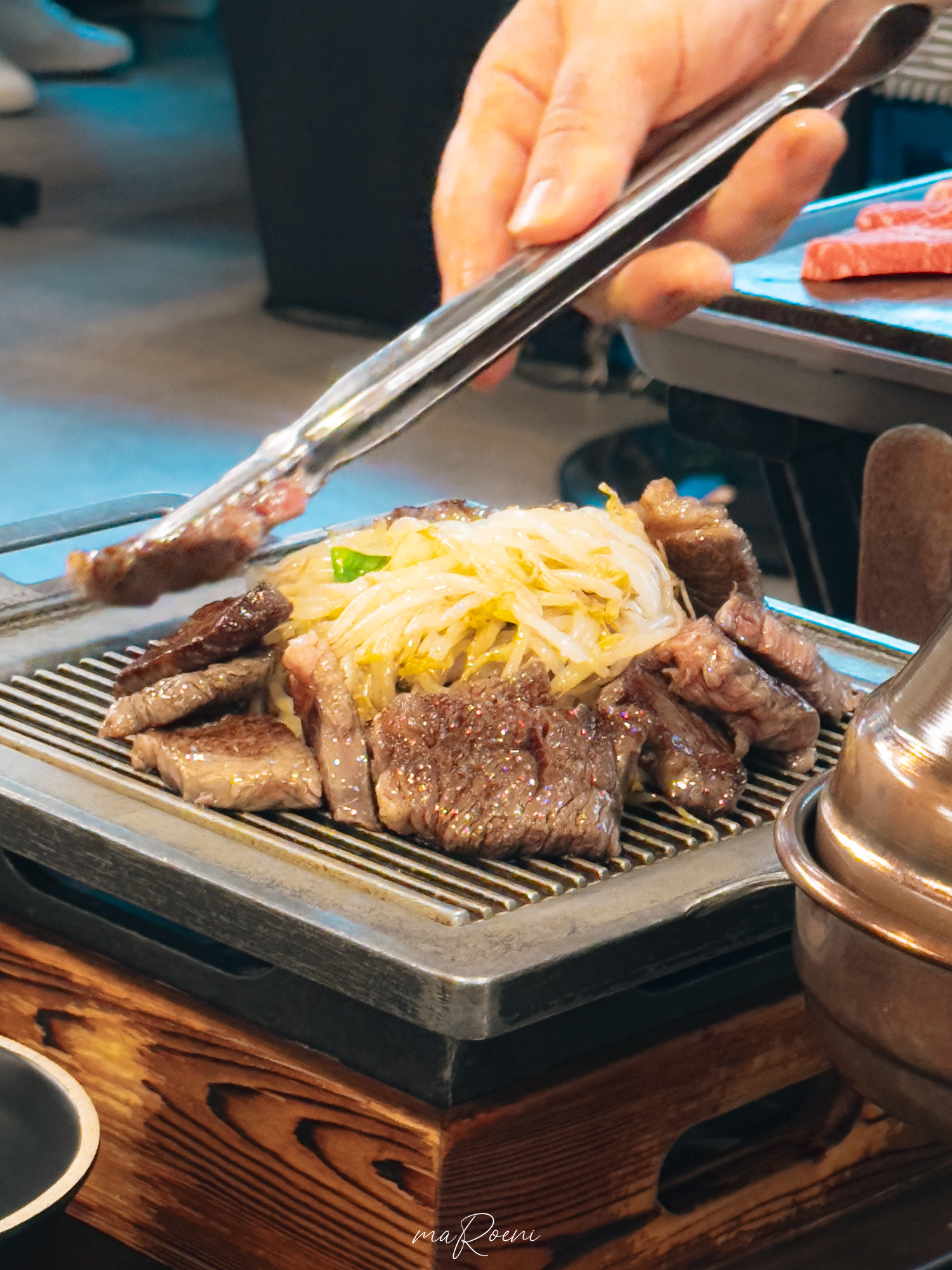 다 구워진 고기는 숙주와 함께 미니 화로로 옮겨주시는데, 그냥 이걸 집어먹기만 하면 됨.
