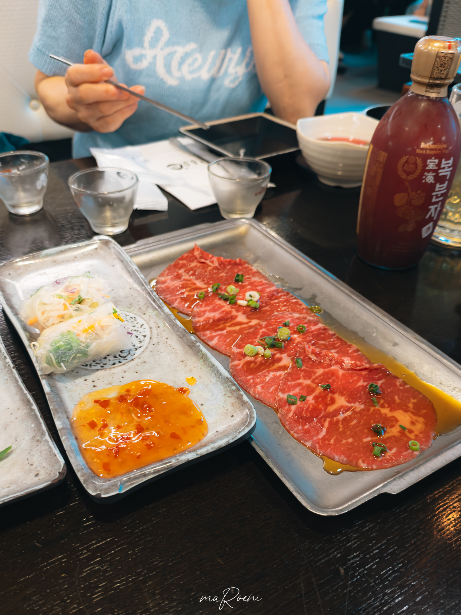 이름 하나하나 전부 외우지는 못했는데, 내 입맛엔 직화구이 고기 초밥이 가장 맛있었음. 저 슬라이스 된 햄 같은 건 카르파초..? 라고 하는 음식이라던데 '유자맛 나는 육회' 맛을 모르는 나는 딱 요정도..? 김치류들은 평타 이상은 하길래 몇 번 리필해 먹었다.
