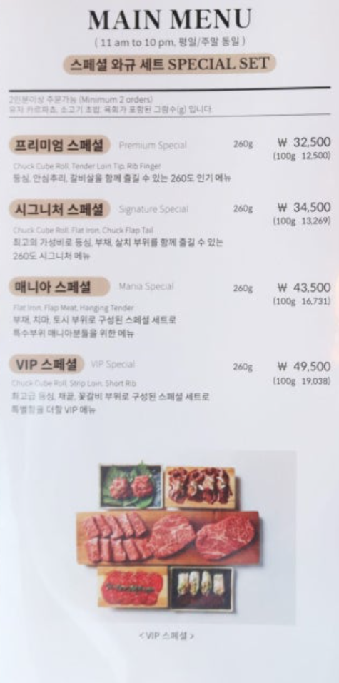 아무튼 우리는 모처럼 부모님을 모시는 자리이기 때문에 VIP스페셜!! 1인당 49,500원으로 START했다.