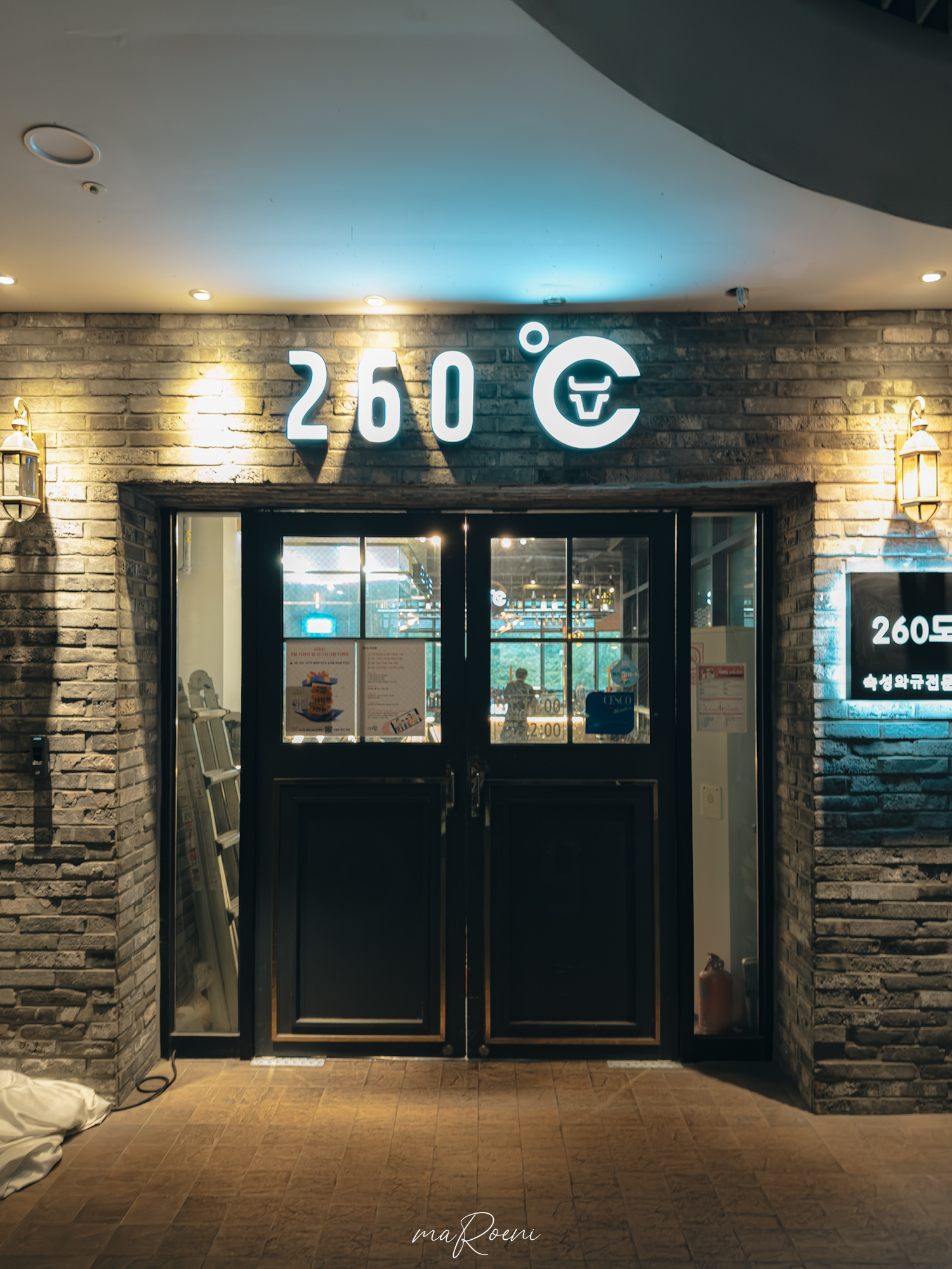 260도 메뉴판. 가격 자체는 솔직히 비싸다고 느껴지는 수준이었음. 여길 방문한 건 처음이 아니지만.. 회식 때 사장 주머니에서 나오는 돈으로 먹는 거랑 내 주머니에서 나오는 돈으로 먹는 거랑은 심리적 기분이 천지차이더라..ㅠㅠ