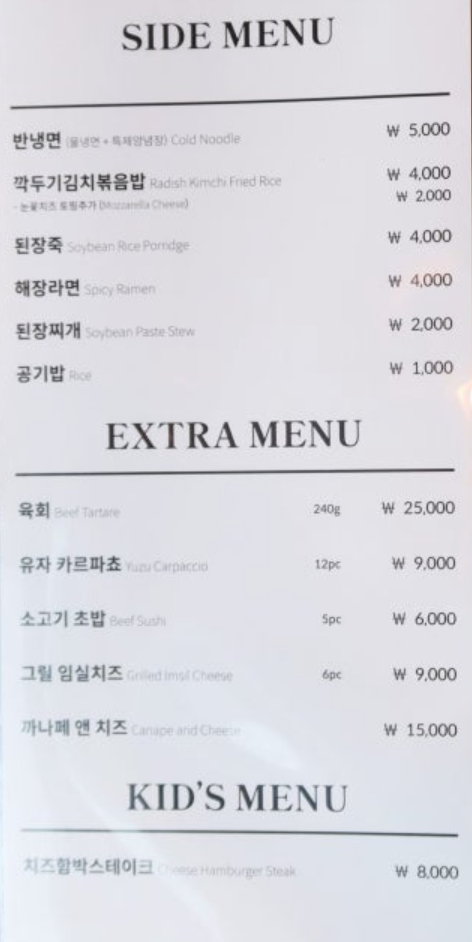 고기에 대해서도 말을 하고 싶지만, 솔직히 부드럽고 육즙 개쩐다 말고는 표현할 방법이 없음. 부모님께서도 이렇게 부드러운 소고기는 처음이라며 집에서 아무리 잘 구워도 이맛이 안 난다며 아버님이 기립박수를 치시려는거 간신히 막음.