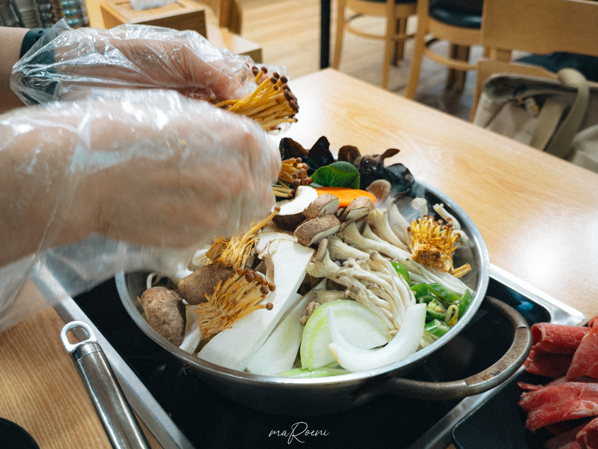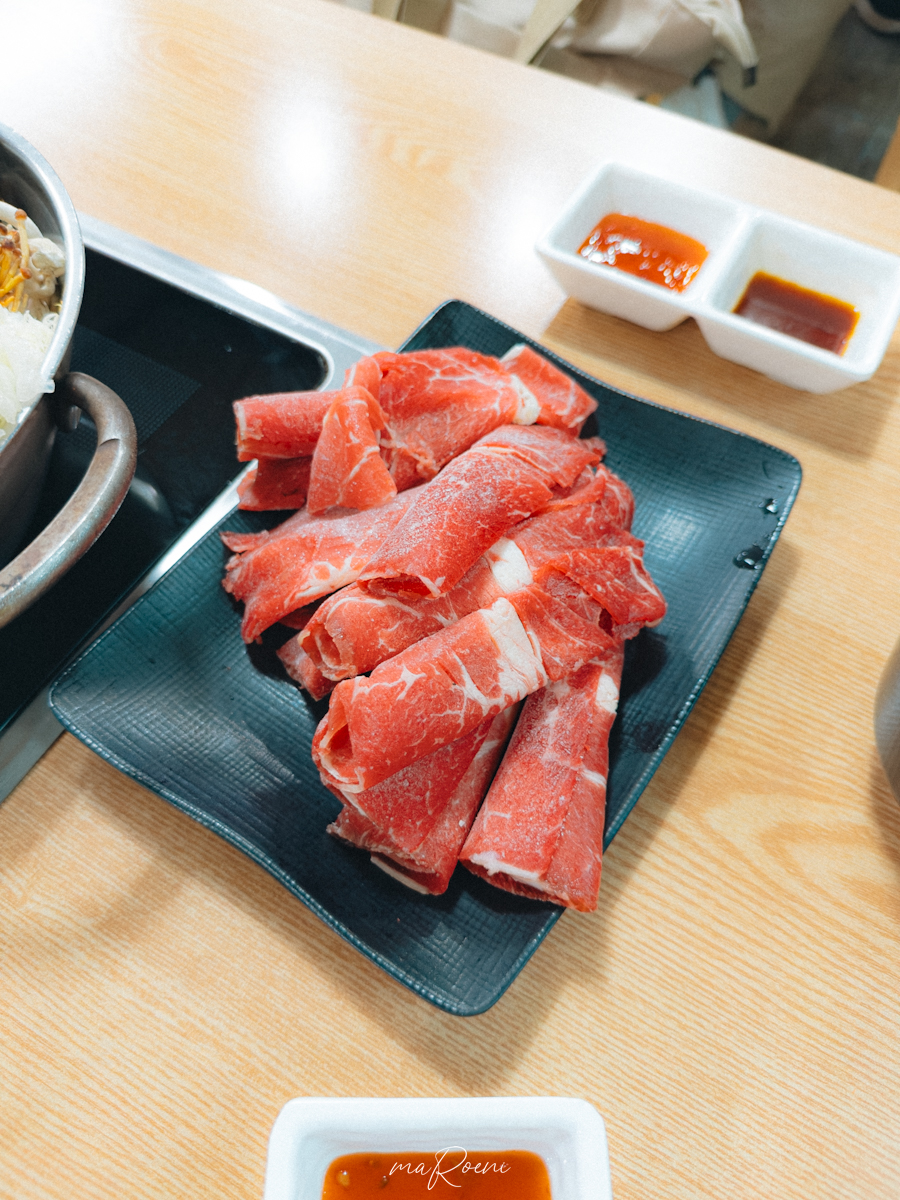 소고기의 상태는 그렇게 썩 좋아 보이지 않았다. 호주산인가? 했던 것 같은데 처음부터 냉동 대패삼겹살마냥 땡땡 얼어서 나오던데.. 비쥬얼은 그다지 썩 좋아보이지 않더라. 나중에 샤브샤브로 먹어봤는데 많이 질겼음. 버섯전골은 소고기보다 굴림만두가 들어간 전골로 주문하는게 이득일듯.