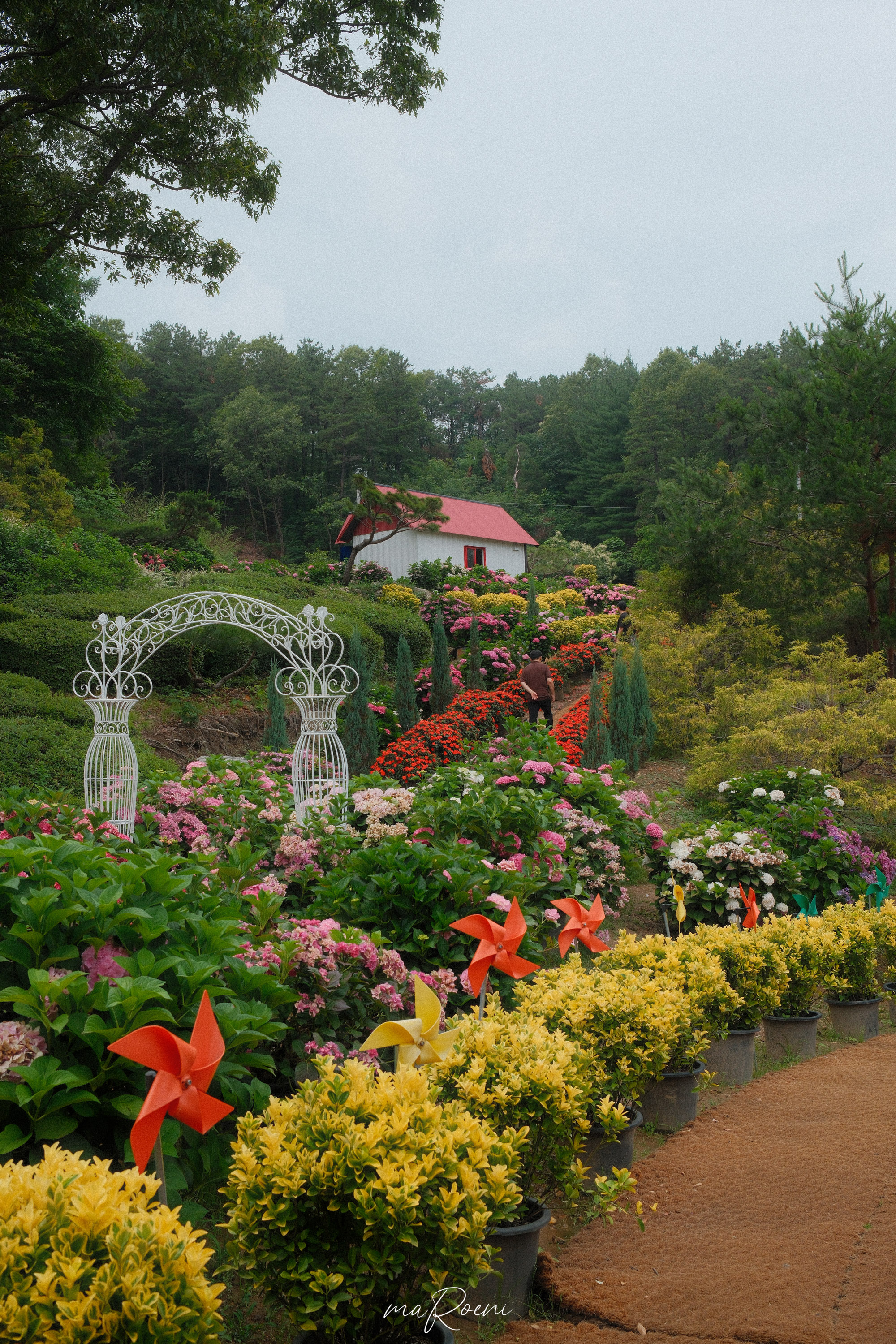 수국 개화시기가 늦어졌다고는 들었는데, 우리가 방문했을땐 막 피어나는 품종도 있었지만, 거의 끝물인 품종들도 많았다. 대부분 불에 타들어간것마냥 수국들이 시들어있었는데, 올해 태양빛이 너무 강렬해서 타버린 모양임ㅋㅋ
