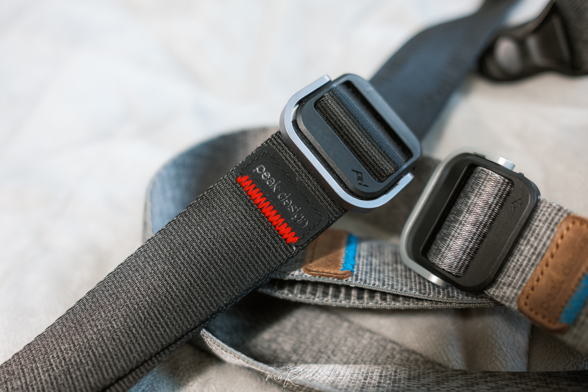 왼쪽이 피지테크의 콩알탄 퀵릴리즈, 오른쪽이 모두가 알고 있는 픽디자인의 앵커마운트다. 눈으로 봐도 차이가 느껴질 만큼 픽디자인쪽이 조금 더 두껍게 느껴지는건 사실이다. 솔직하게 말하면 이 끈의 두께만 보고.. 정말 이거 안전한건가? 믿을만한건가.. 연결해도 문제없겠지를 한참을 고민했었다. 스트랩 때문에 장비 박살나는건 상상하기도 싫으니깐.
