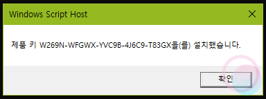 slmgr /ipk W269N-WFGWX-YVC9B-4J6C9-T83GX(위에서 복사한 윈도우10 정품 제품키)를 입력하시면 제품키를 설치합니다.