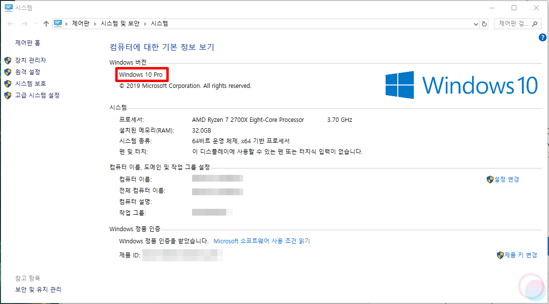 | 윈도우(Windows) 버전 | 제품 시리얼 넘버 |