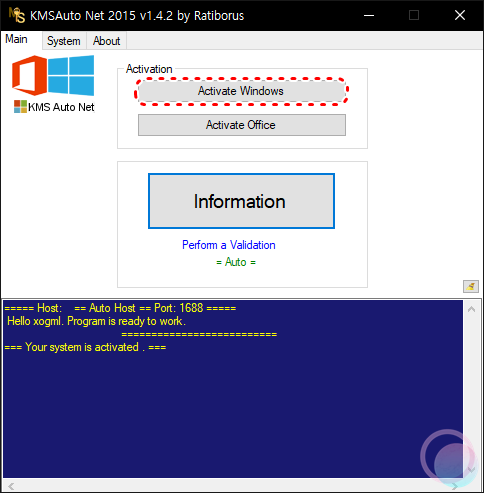프로그램이 실행되면 상단에 있는 Activation을 누르시고 다음 화면에서 Activate Windows를 눌러주시면 자동으로 윈도우10 정품인증이 진행됩니다. 이후 메시지 창에 Product successfully activated라는 메시지가 나타나면 정상적으로 등록이 된 것이니 프로그램을 종료하신 후 재부팅을 진행하시면 됩니다.