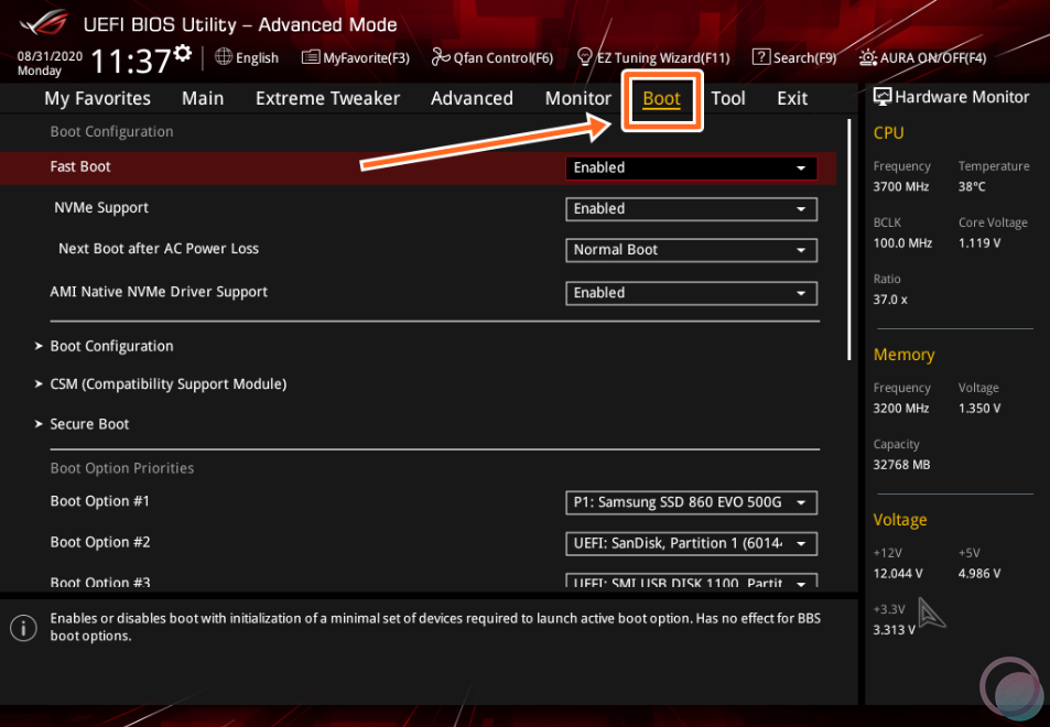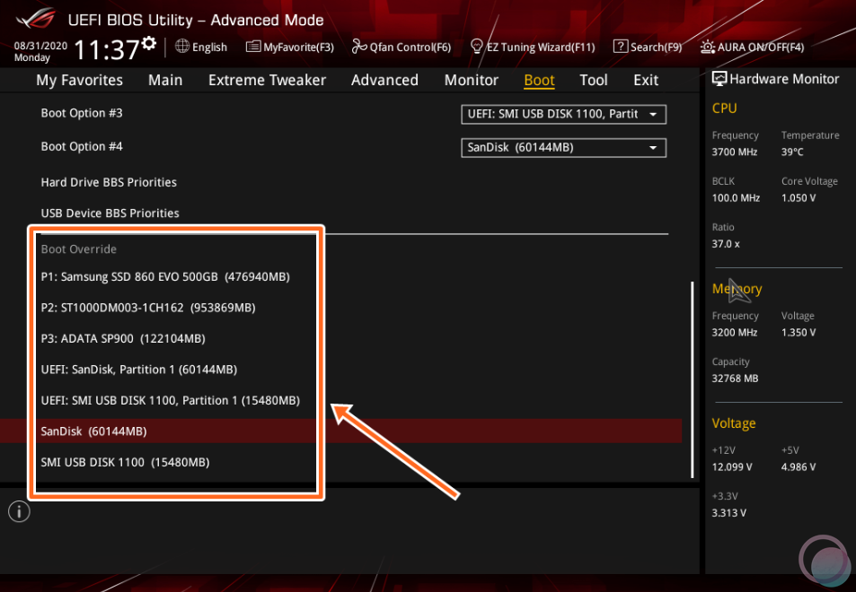 BIOS 설정 화면이 나타나면 상단에 BOOT라는 메뉴에 들어가고, 거기서 윈도우10 설치 파일이 담겨있는 부팅 USB를 선택해주시면 자동으로 PC가 재부팅 되면서 윈도우10 설치 화면이 나타날 것입니다.