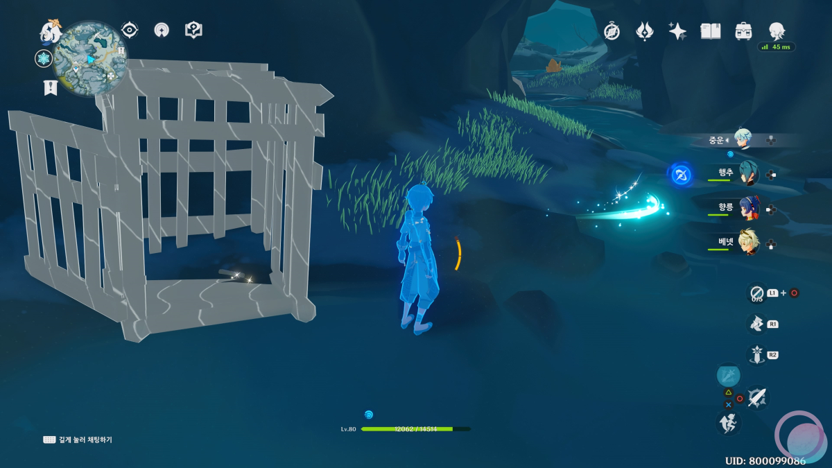 보급이 숨겨진 곳을 찾아야 하는데, 원소시야를 활성화 하면 바람의 원소가 특정 방향으로 안내하고 있는 것을 확인 할 수 있습니다.