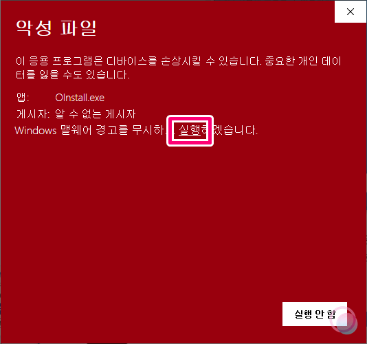 2-1) 티스토리에 10mb 이상의 용량이 첨부되지 않기 때문에 분할압축하였습니다. 두 개의 파일을 한곳에 다운받아준 후 압축을 해제하고 OInstall.exe를 실행해주세요. 실행할 때 Windows의 PC 보호 알림창이 나타나면 추가정보를 누른 후 실행을 눌러주시면 됩니다.