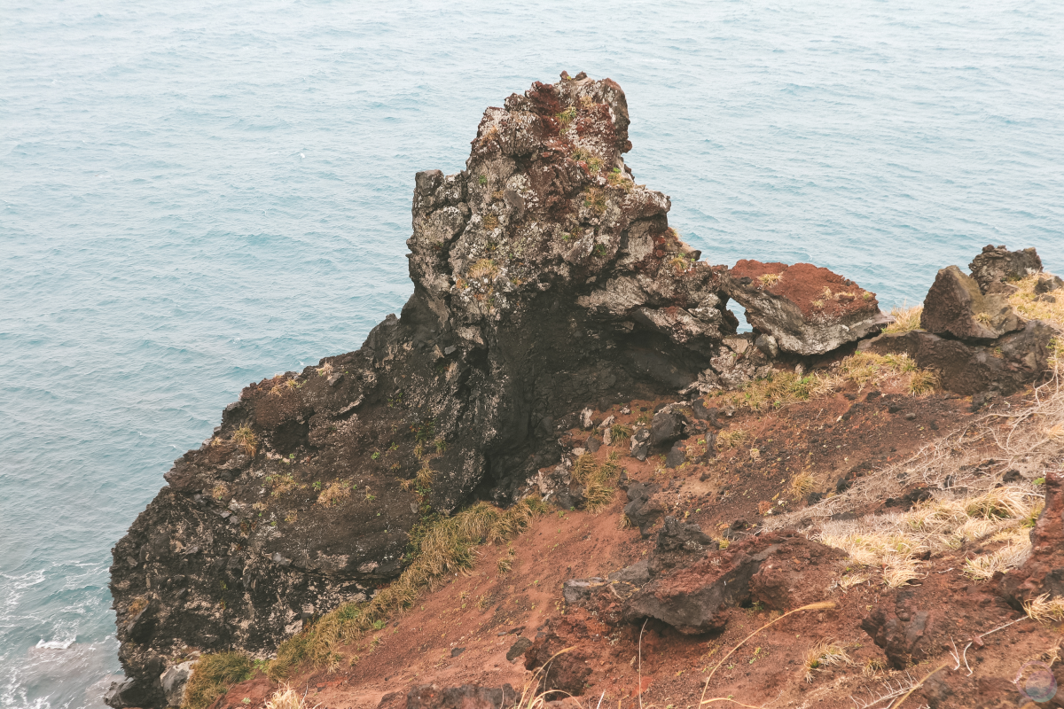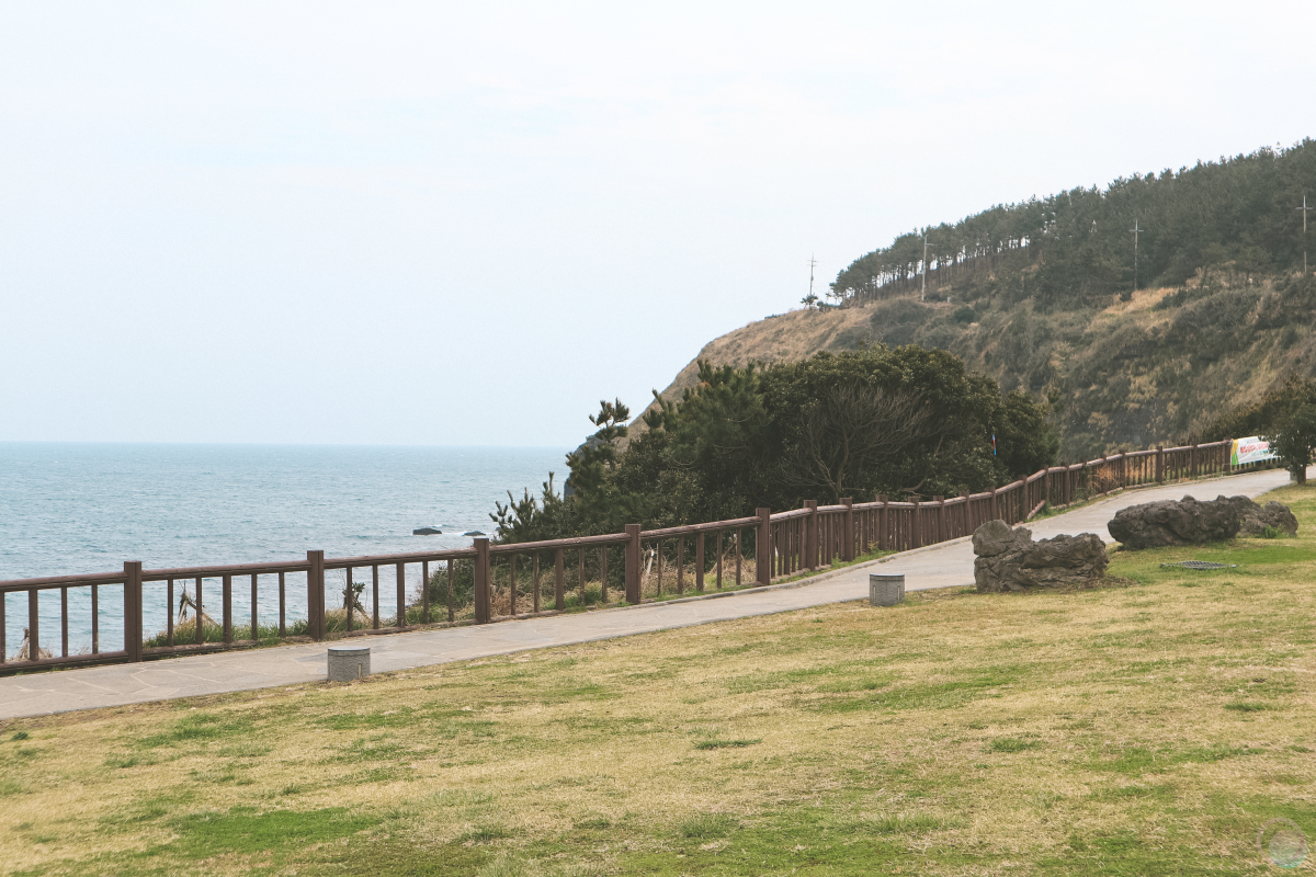 산책로가 너무 길어서 지루해질 때쯤엔 절벽을 배경으로 사진을 찍어보는 건 어떨까요? 보정을 하지 않아도 에메랄드색으로 빛나는 바다와 멋지게 깎여있는 송악산의 절벽만 있다면 똥손이라도 멋진 사진을 남기실 수 있답니다.
