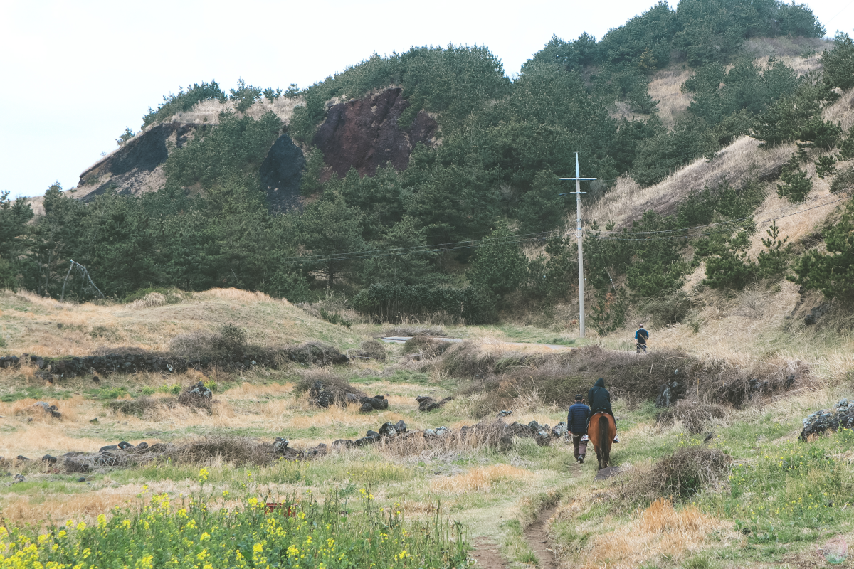 바다의 색이 갑자기 극과 극으로 바뀌었죠? 송악산을 한바퀴 다 돌때쯤 날씨가 다시 흐려지기 시작하더니 이윽고 비까지 부슬부슬 내리기 시작하더라구요. 우산과 우비를 챙겨오지 않았기에 여기서부터는 달려야 했답니다.