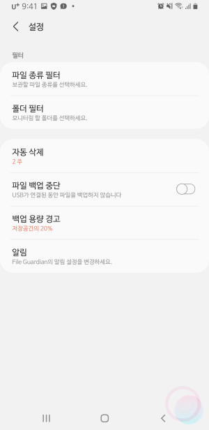 File Guardian(파일 가디언)은 삭제된 파일을 복구해주는 기능입니다. 갤럭시 스마트폰에서는 기본적으로 갤러리에서 사진을 삭제하면 휴지통에 약 30일간 보관되는데 그 기능과 동일하다고 보시면됩니다. 차이점이라고 한다면 기존에는 사진만 가능했었지만 File Guardian에서는 모든 파일이 가능하다는 정도입니다.