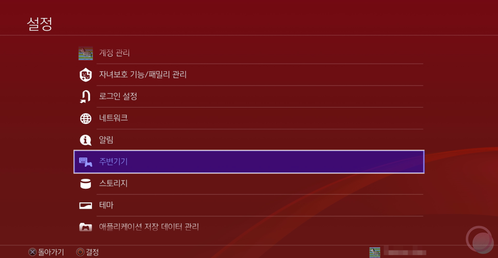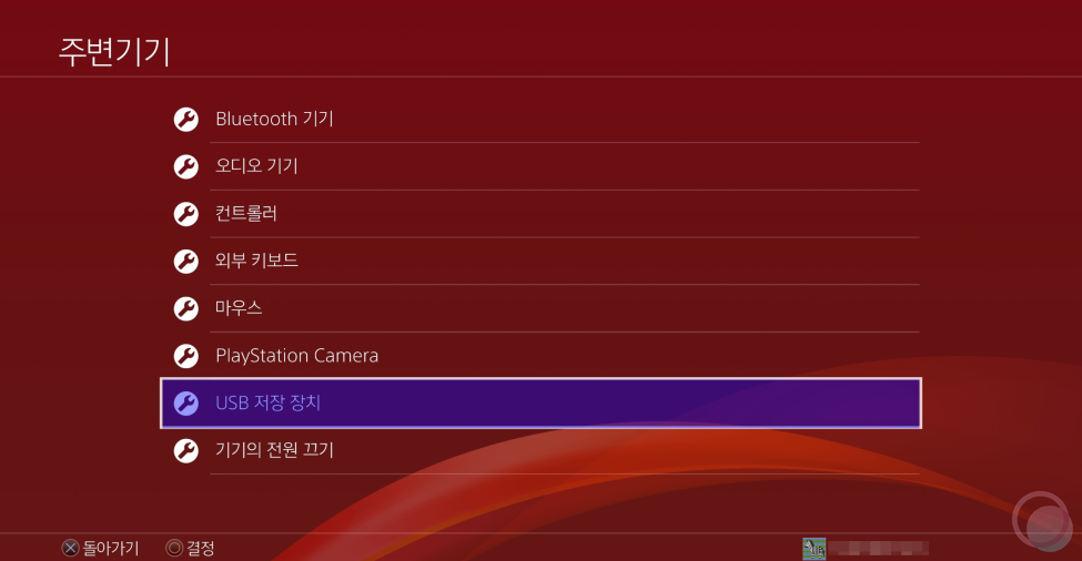 PS4에 SSD연결이 끝났다면 설정-주변기기로 들어간 후