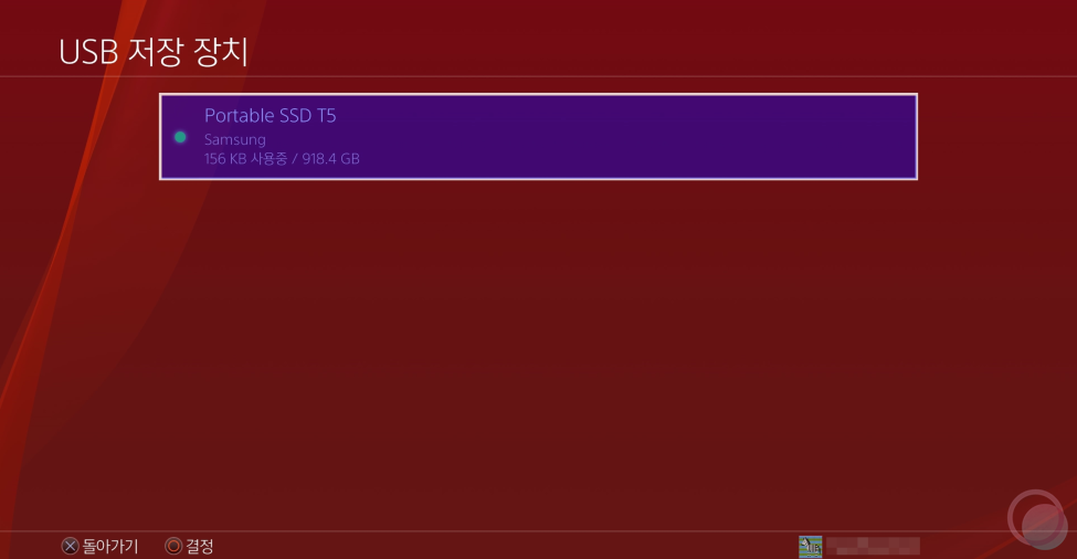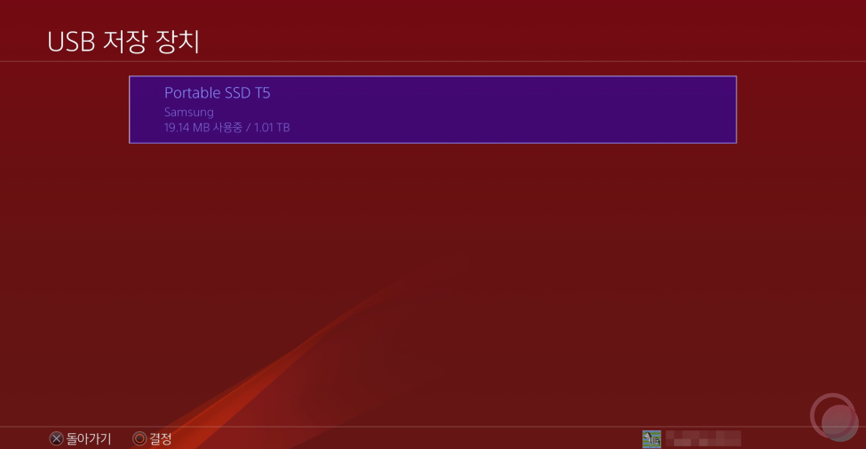 드디어 PS4 Pro에 연결해보는 시간입니다! PS4에서는 전면에 USB 포트가 2개, 후면에 1개가 있는데요. 전면부는 패드 충전용이나 USB 용도로 많이 활용하기 때문에 저는 잘 사용하지 않는 후면 USB포트에 삼성 외장 SSD T5 1TB를 연결해주었습니다.