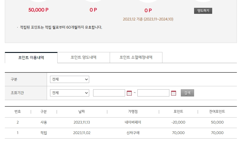 전환 자체는 어렵지 않게 진행할 수 있지만, 여기엔 아주 큰 단점이 있다. 네이버페이 포인트로 전환할 수 있는 맥시멈 포인트가 한 달에 2만이라는 것.. 나는 스포티지 하이브리드를 구매해서 7만포인트를 받았지만, 이 포인트를 모두 네이버페이 포인트로 전환하려면 4개월이 필요하다는 뜻이다.